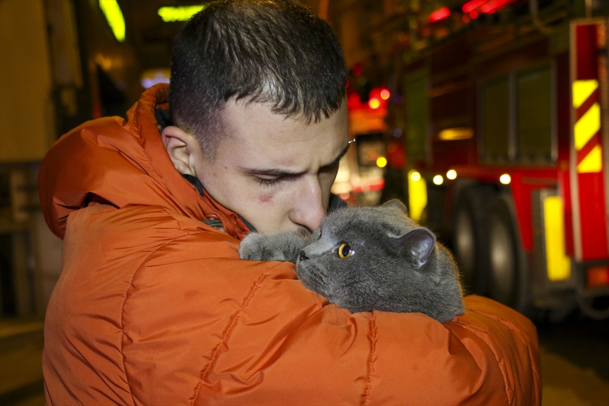 Yangında mahsur kalan ve bir polis tarafından kurtarılan "Alfa" adlı kediye ekipler olay yerinde oksijen vererek müdahale etti.