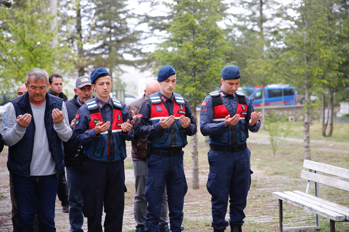 Yaşlılığa bağlı rahatsızlıkları nedeniyle yaşamını yitiren Yalçın'ın cenazesi, yakınlarının ve jandarma görevlilerinin omuzlarında Yunus Emre Mahallesi Mezarlığı'na getirildi.