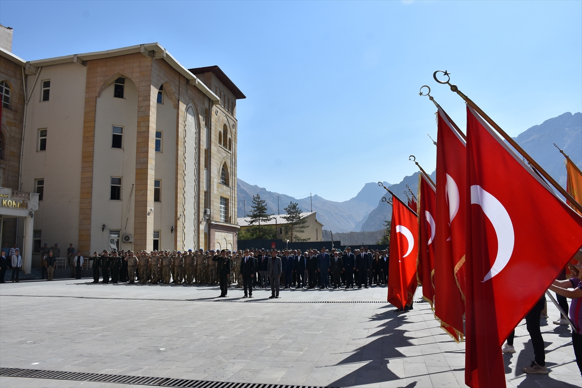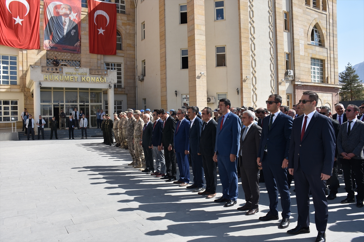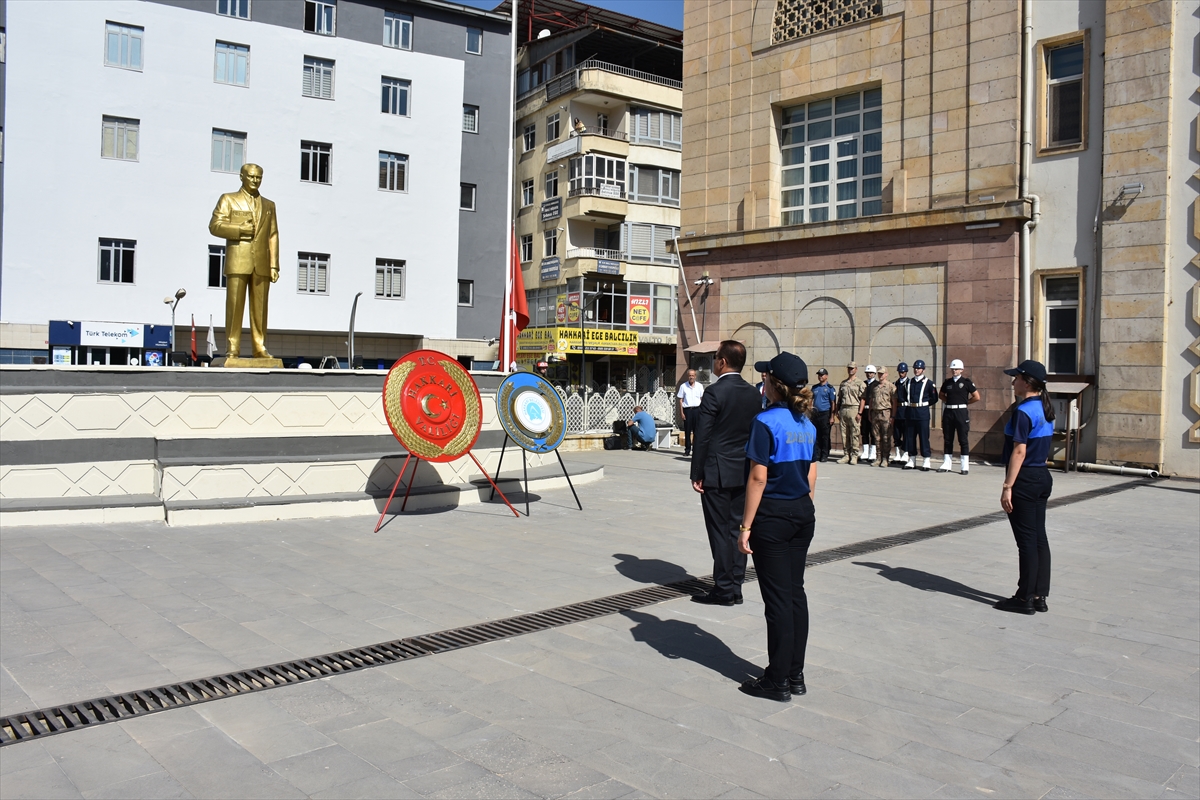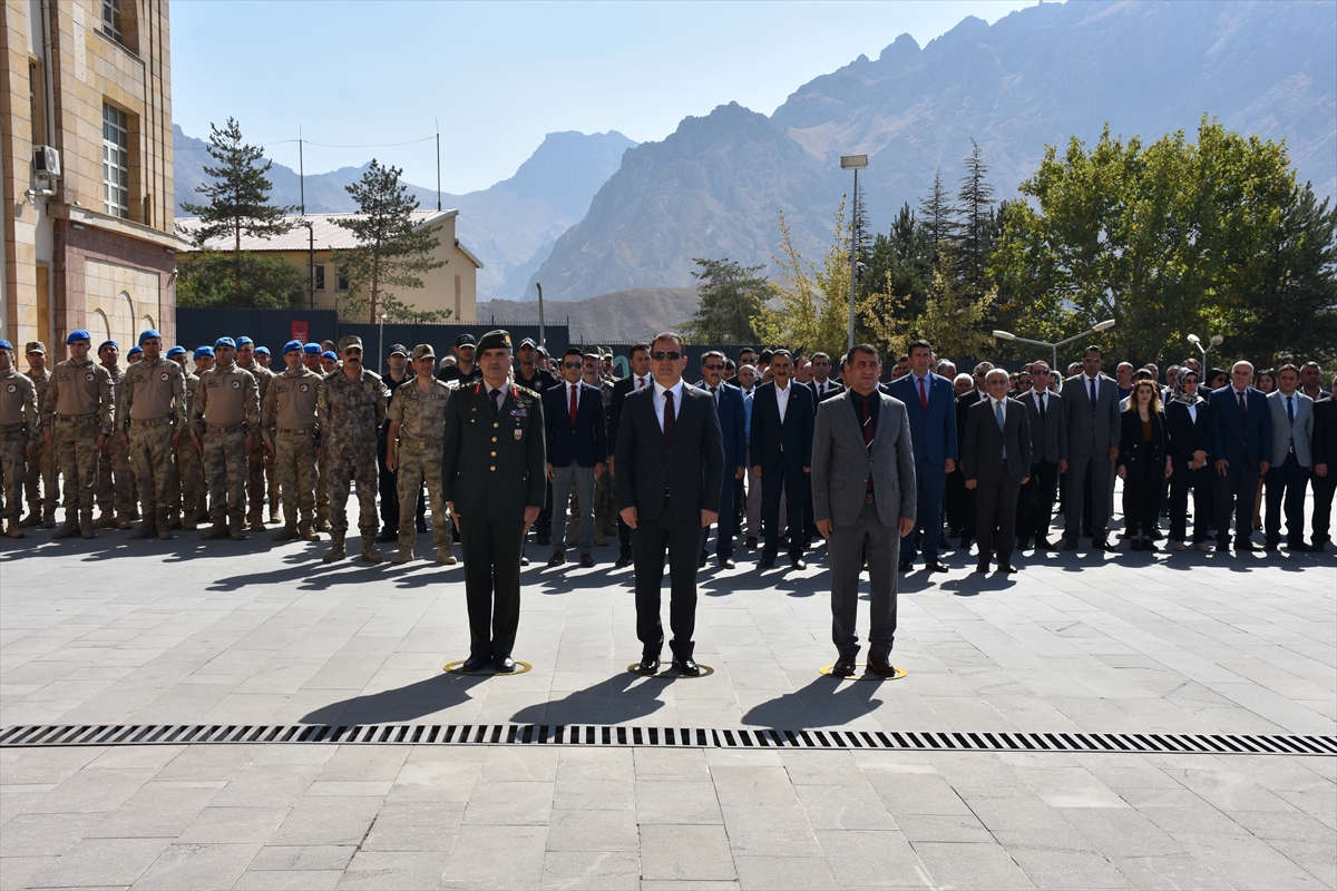Valilik önündeki törende, Vali ve Belediye Başkan Vekili İdris Akbıyık, Yüksekova 3. Piyade Tümen Komutanı Tümgeneral Mustafa Koşan ile Şehit Aileleri ve Gaziler Derneği Başkanı İbrahim Adıyaman, Atatürk Anıtı'na çelenk sundu.