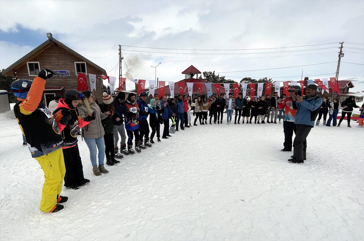 Merkeze gelenler, kayak yapmanın yanında müzik eşliğinde halay çekerek eğlendi.
