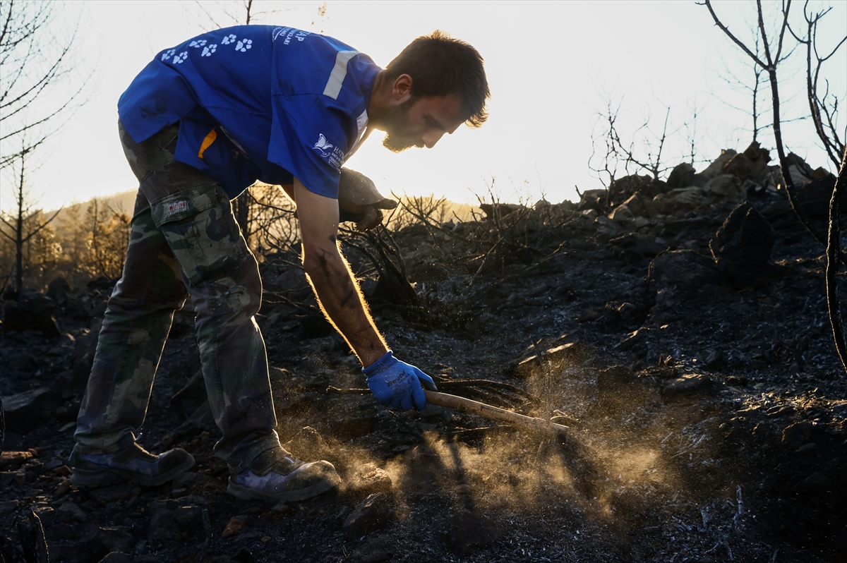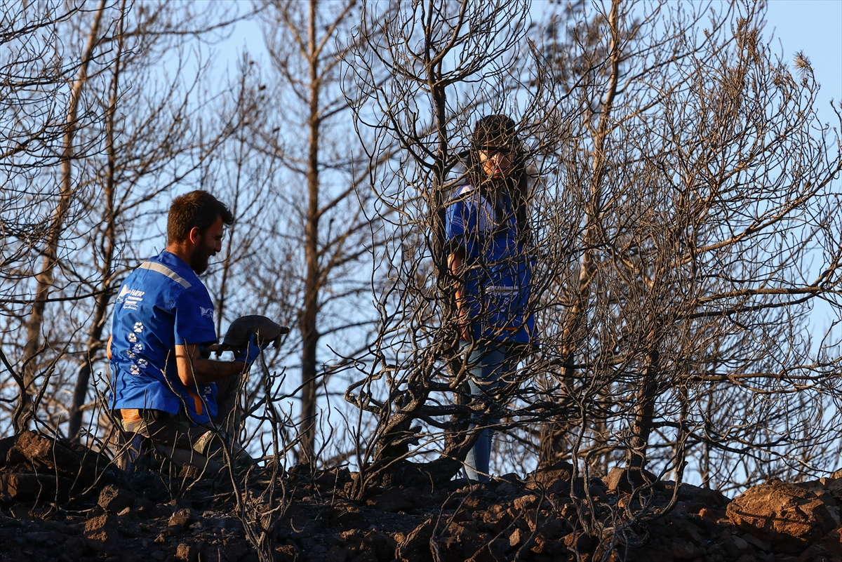 Hisarönü Mahallesi Bördübet ve Yedi Adalar bölgesinde 21 Haziran'da çıkan orman yangınının ardından yanan alanlarda canlı kalmayı başaran hayvanların bulunması için çaba gösteriliyor.