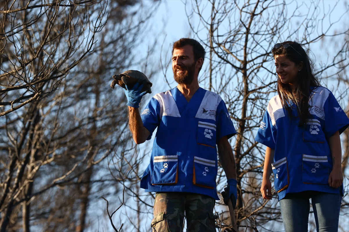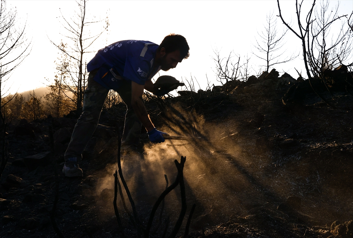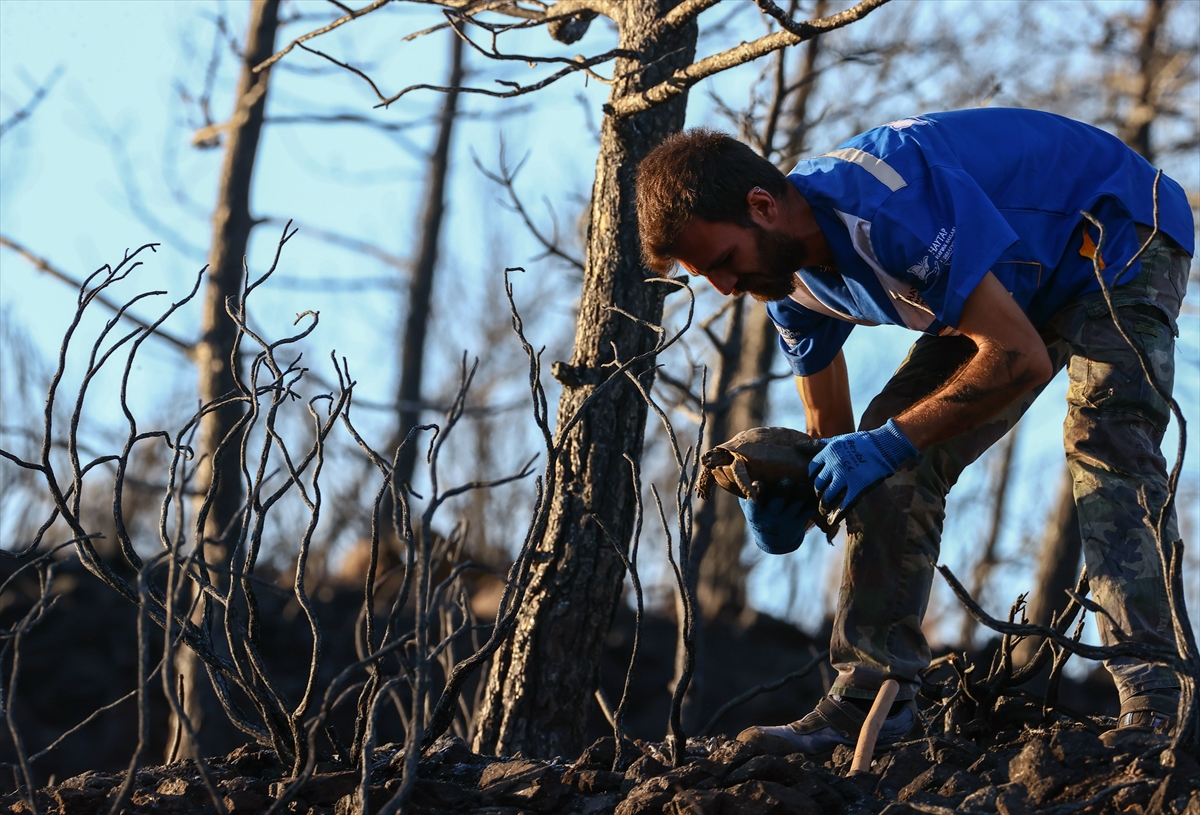 MUĞLA (AA) – MUSTAFA GÜNGÖR – Marmaris'teki orman yangınında alevlerden kaçmak için toprağın altına saklanan hayvanları arayan Hayvan Hakları Federasyonu (HAYTAP) gönüllüleri, çok sayıda kaplumbağa ve kirpiyi yanmaktan kurtardı.