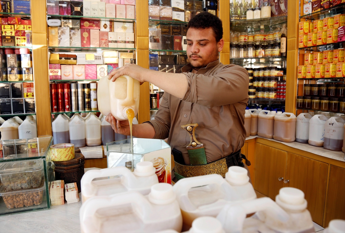 Başkent Sana'da bir bal dükkanı bulunan Ebu Abdurrahman Ali, AA muhabirine yaptığı açıklamada, uzun yıllardır arıcılık ve bal üretimiyle uğraştığını, karşılaştığı tüm zorluklara rağmen işini tutkuyla yapmaya devam ettiğini söyledi.
