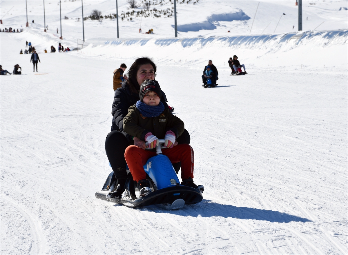 Ziyaretçilerden Derya Okutansoy, AA muhabirine, ailesi ve çocuklarıyla kayak merkezinde keyifli bir gün geçirdiklerini belirterek, "Öğretmen olduğum için hafta sonları sık sık buraya ailemle geliyorum. Ben kayak yapıyorum, çocuklarım da kızakla kaymayı çok seviyor." dedi.