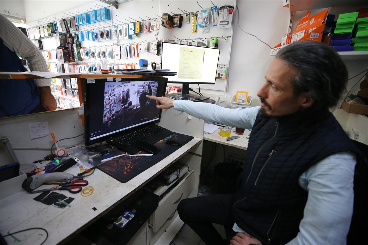İş yerinin güvenlik kamerası kayıtlarında işletmeciyle sohbet eden zanlının inceleme bahanesiyle yaklaştığı motosiklete binerek bölgeden uzaklaştığı görülüyor.