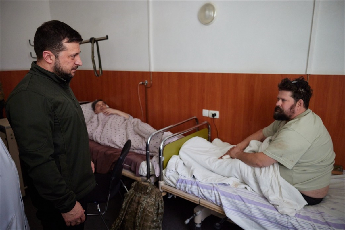 Yaralılarla sohbet ederek kendilerine hediyeler takdim eden Zelenskiy, herkese acil şifalar diledi ve hep birlikte kazanacaklarını ifade etti.