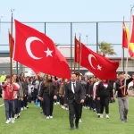 Öğrenciler, Cumhuriyet Meydanı'ndan Hüseyin Akbaş Spor Salonu'na kadar Türk bayraklarıyla yürüyüş yaptı. Buradaki törende ise halk oyunları ve spor gösterileri yapıldı.