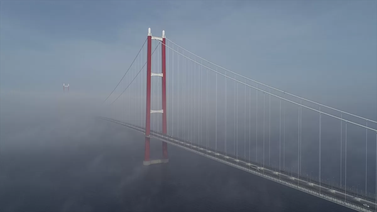 Asya ile Avrupa kıtaları arasında 2 bin 23 metre orta açıklığı ile dünyanın en uzun orta açıklıklı asma köprüsü unvanına sahip 1915 Çanakkale Köprüsü ile çevresinde de yoğun sis etkisini hissettirdi.