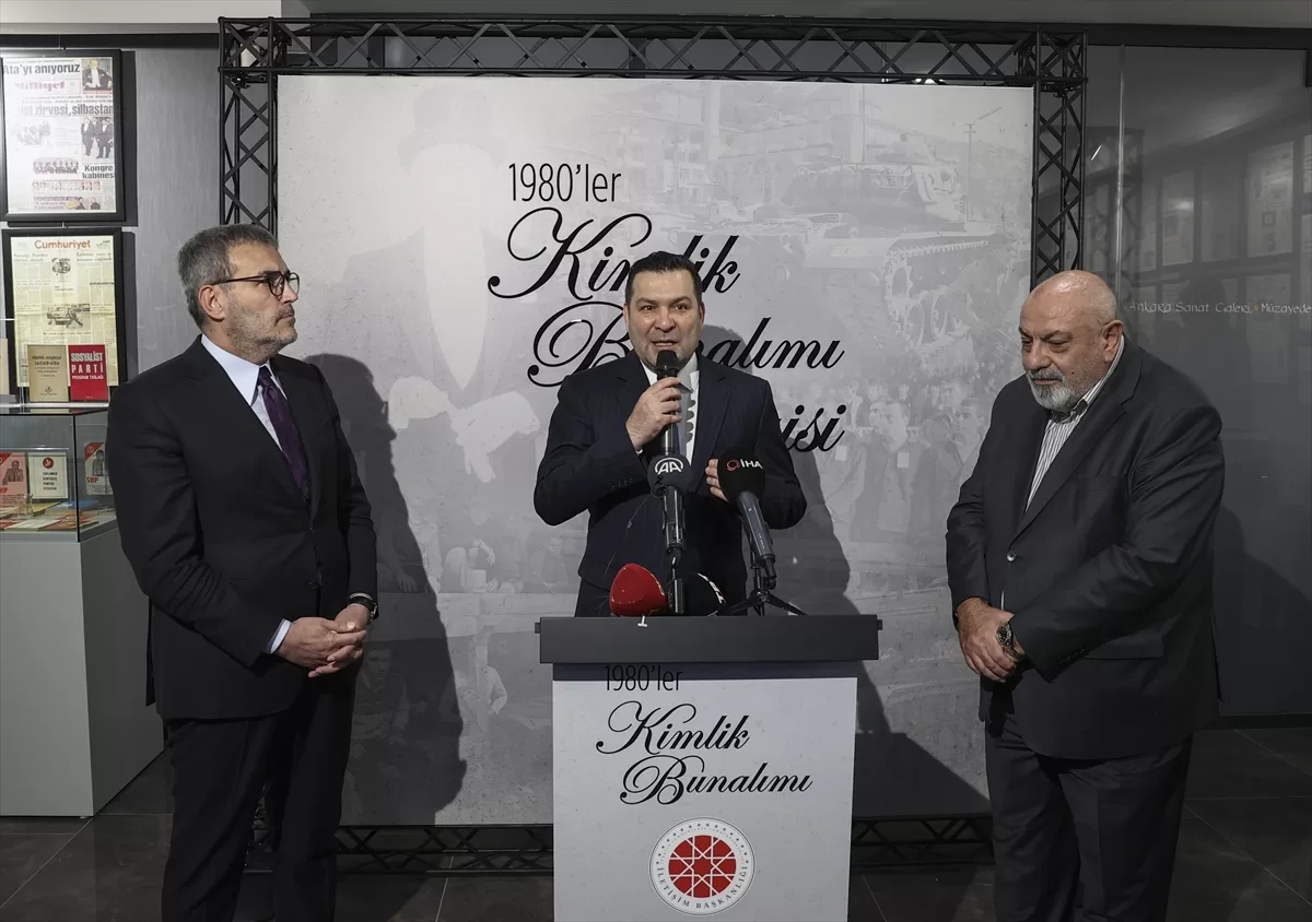 ANKARA (AA) – Cumhurbaşkanlığı İletişim Başkanlığının katkılarıyla Ankara Kültür Sanat ve Medeniyet Derneği Başkanı Eyüp Gökhan Özekin tarafından hazırlanan "1980'ler Kimlik Bunalımı" sergisi ziyarete açıldı.