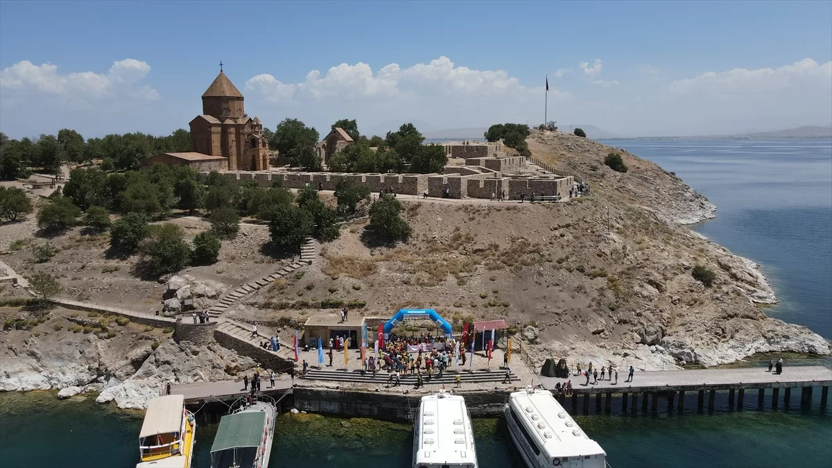Etaplar halinde 5 gün süren festivalin son gününde yaklaşık 200 sporcu ve doğasever, Gevaş ilçesinden teknelerle Akdamar Adası'na geldi.