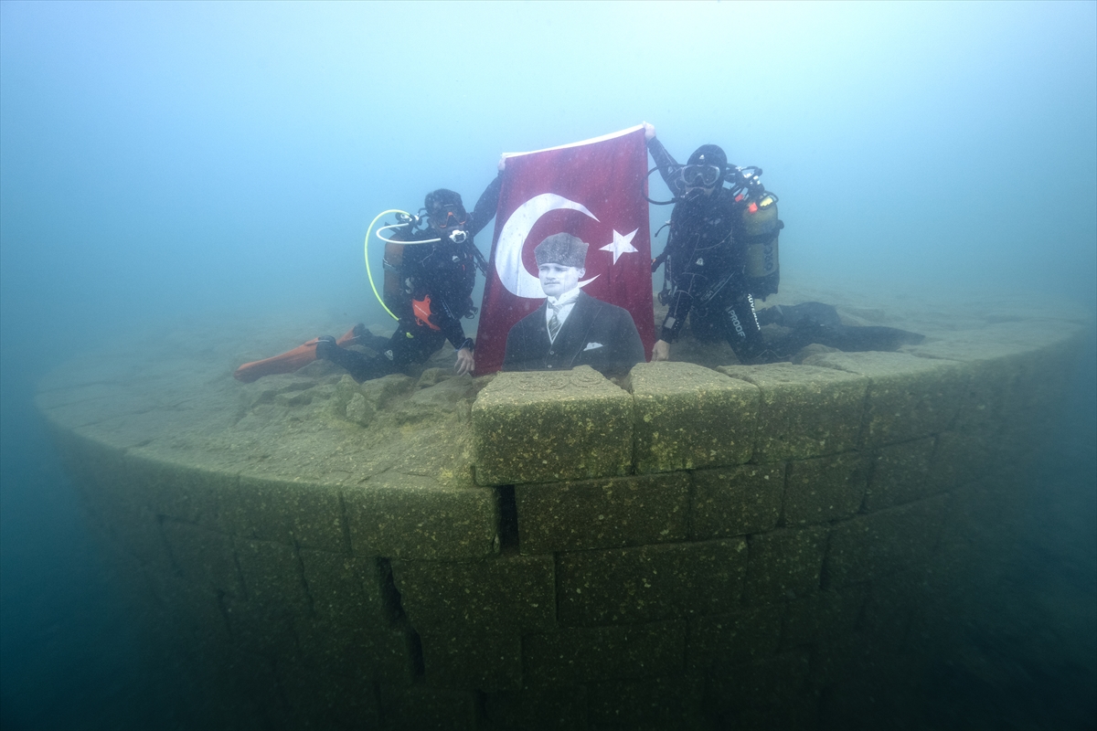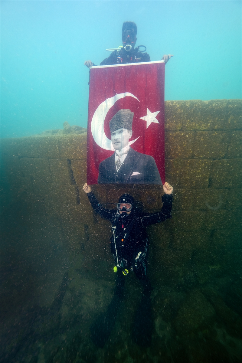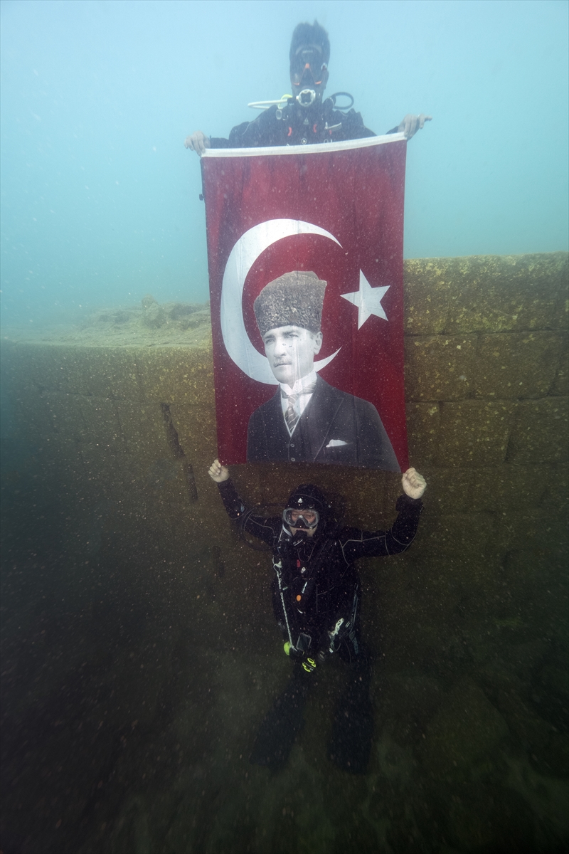 Ceylan ve ekibi, 29 Ekim Cumhuriyet Bayramı etkinlikleri kapsamında Van Gölü'nde dalış gerçekleştirdi.