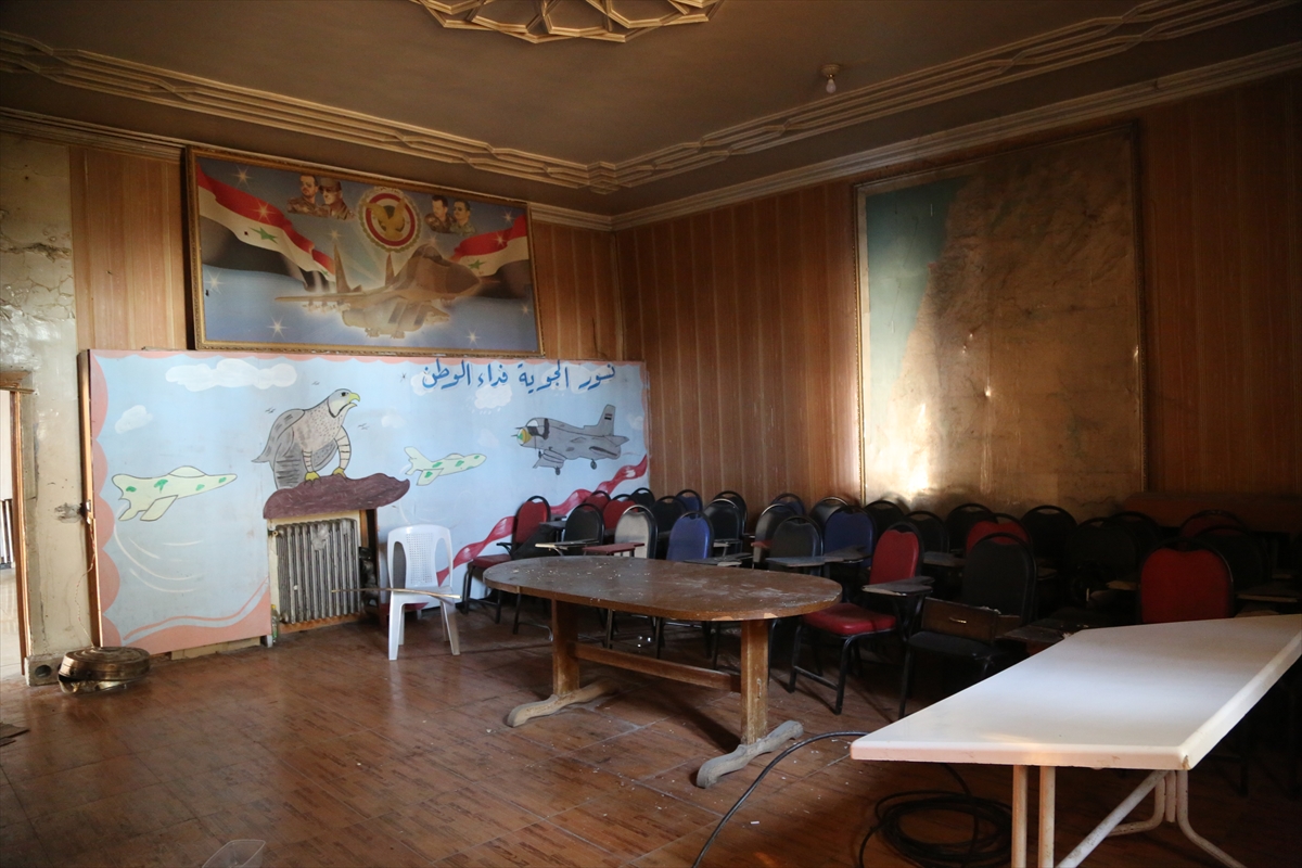 Rejim askerlerinin gözetim kulesi olarak kullandığı düşünülen yapının da yer aldığı havaalanındaki ofislerde çeşitli resmi evrakların dağınık şekilde bırakıldığı görülüyor.
