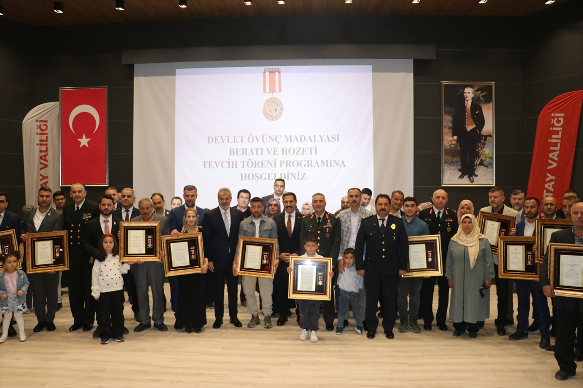 Hatay'da düzenlenen törende de 8 şehit yakını ve 13 gaziye Devlet Övünç Madalyası ve Beratı verildi.