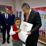 Vali Pehlivan, karnelerini dağıttığı öğrencilere hediyeler de verdi.