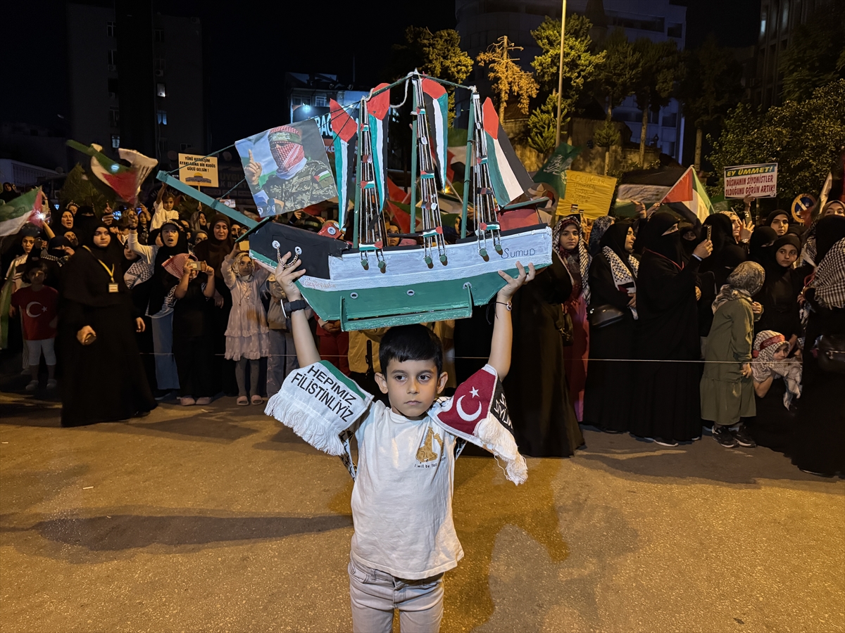 Hatay'ın İskenderun ilçesinde de İsrail'in Küresel Sumud Filosu'na saldırısına tepki gösterildi.