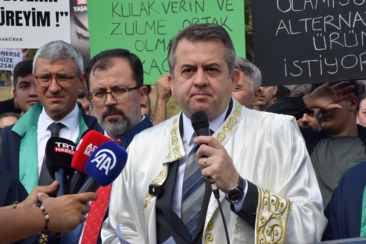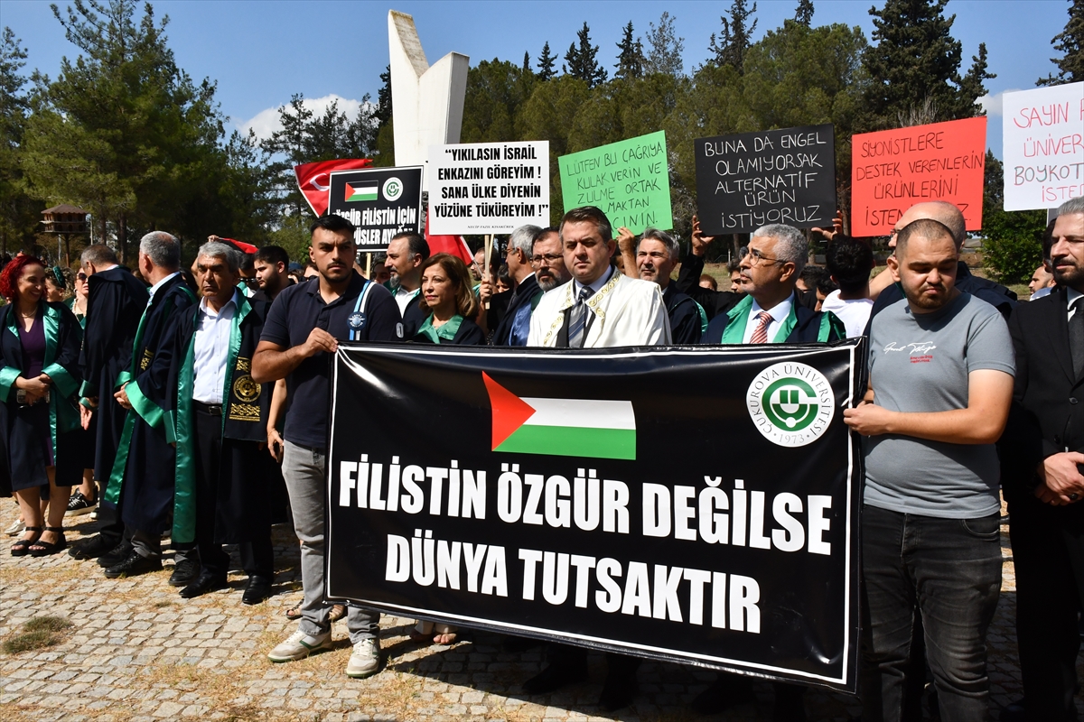 ÇÜ Rektörü Prof. Dr. Hamit Emrah Beriş, akademisyenler ve öğrenciler, ellerinde Türk ve Filistin bayraklarıyla kampüste yürüyüş yaptı.