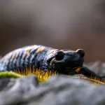 Belemedik Tabiat Parkı'nda, vatandaşlar, tren raylarına yakın bir bölgede, korumada öncelikli ve azalan varlık durumundaki türlerden "lekeli semender"e rastladı.