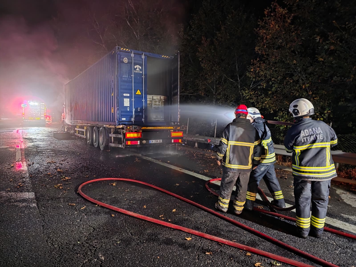 Sürücüsü ve plakası henüz öğrenilemeyen tır, Tarsus-Pozantı Otoyolu'nun Güney Gişeleri mevkisinde alev aldı.