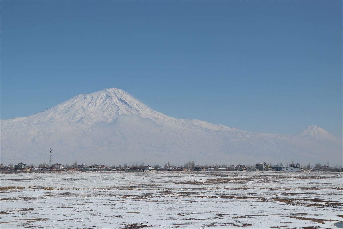 AĞRI (AA) – Ağrı'nın Doğubayazıt ilçesinde bulunan Türkiye'nin en yüksek dağı Ağrı, bölgede etkili olan kar yağışıyla tamamen beyaza büründü.