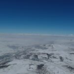 Ağaçların kırağıyla kaplandığı ilçede karlı dağlarda etkili olan sis dronla görüntülendi.