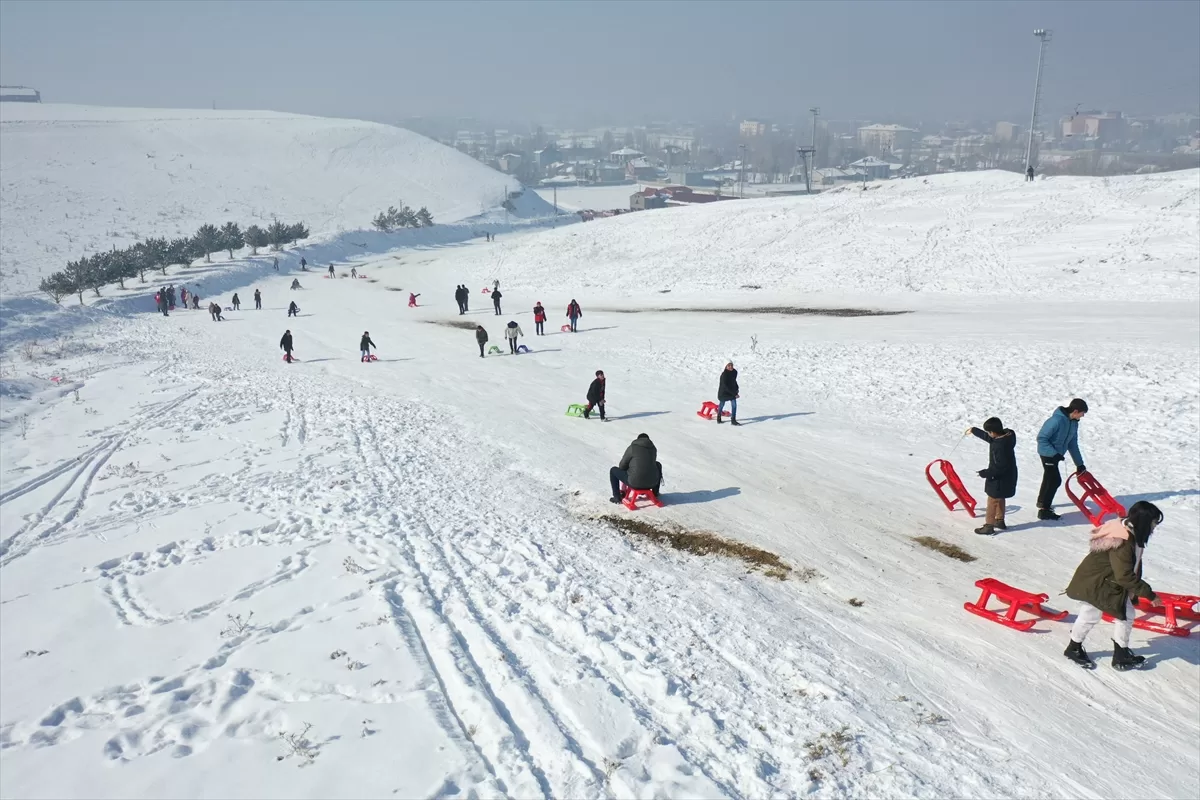 AĞRI (AA) – Ağrı'da, Türk Kızılay gönüllülerince Küpkıran Kayak Merkezi'ne getirilen yetim çocuklar, kızakla kayarak eğlenceli anlar yaşadı.
