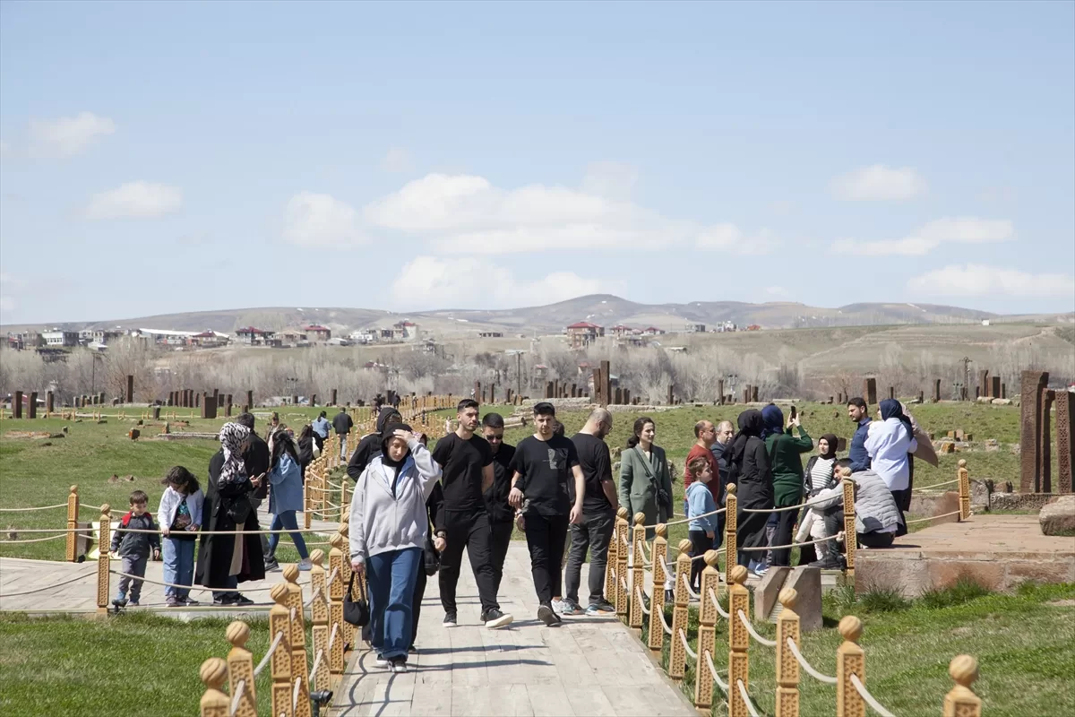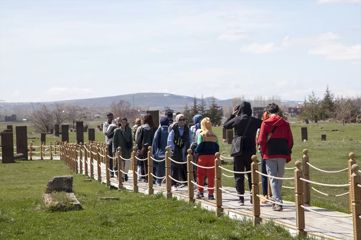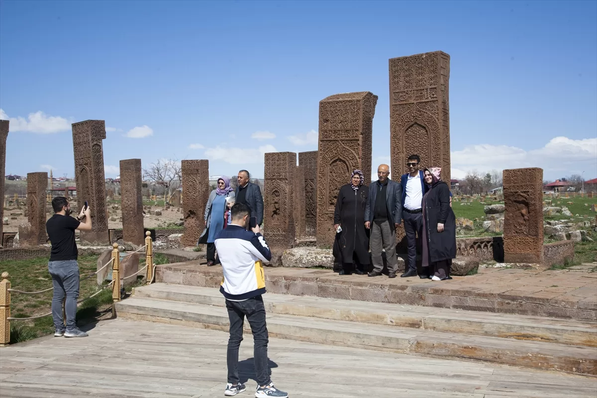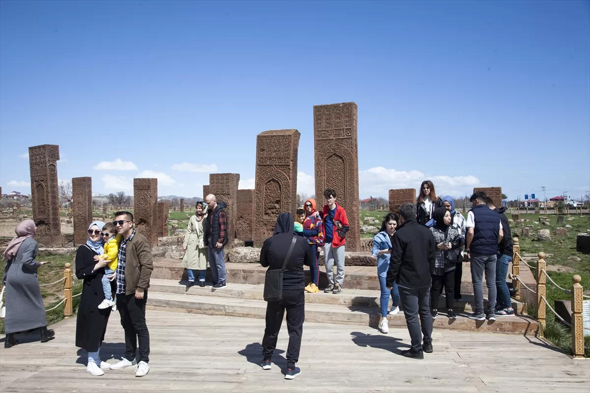 Bayram tatili dolayısıyla "Sakin Şehir" unvanına sahip Ahlat'a gelen yerli ve yabancı turistler, Selçuklu Meydan Mezarlığı'nı ve alandaki tarihi kümbetleri gezdi.