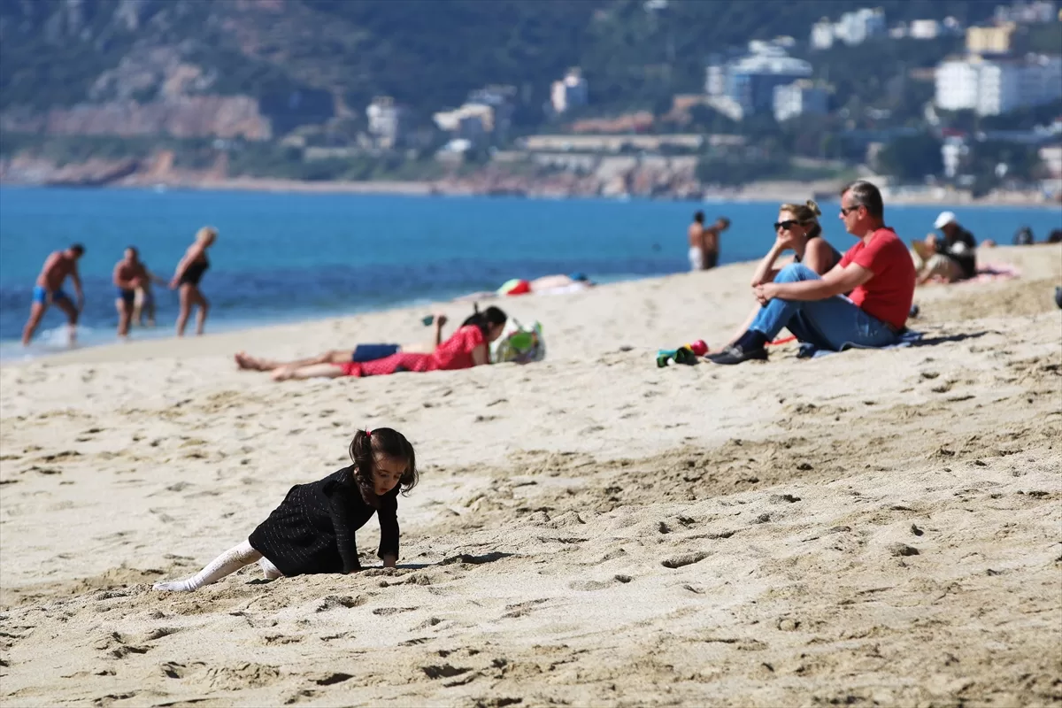 ANTALYA (AA) – Antalya'nın Alanya ilçesinde güneşli havayı fırsat bilenler denize girdi, sahilde güneşlendi.