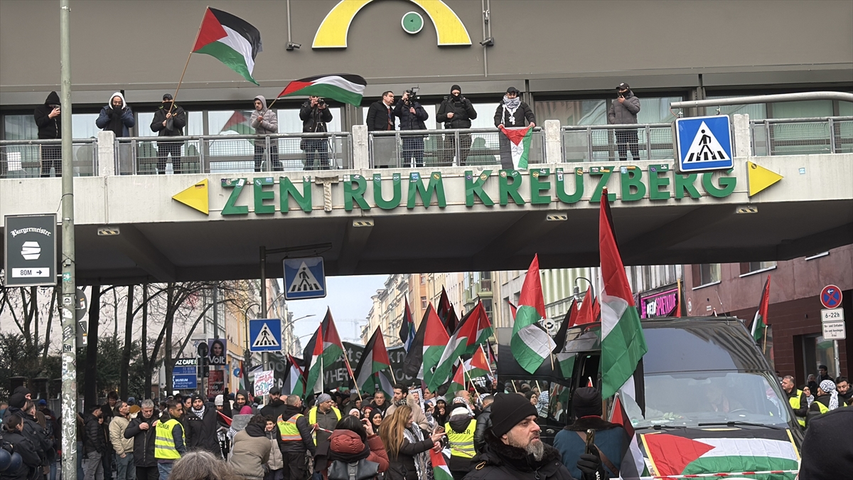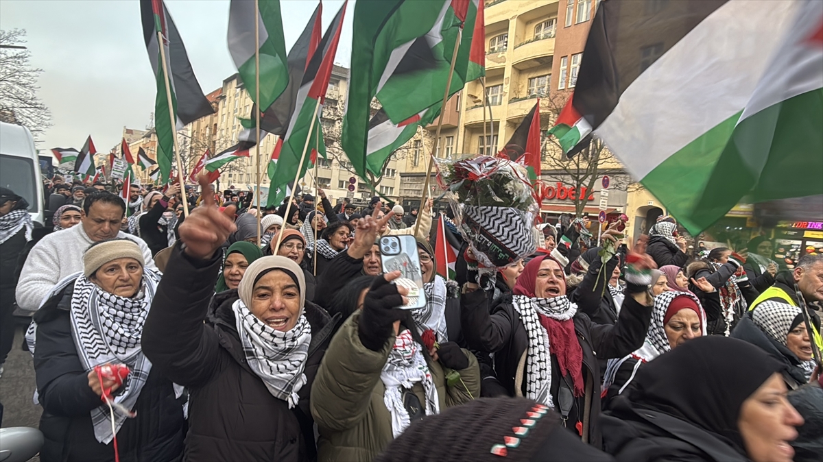 BERLİN (AA) – Almanya’nın başkenti Berlin’de binlerce kişi Filistin’e destek gösterisine katıldı.