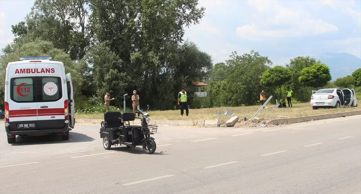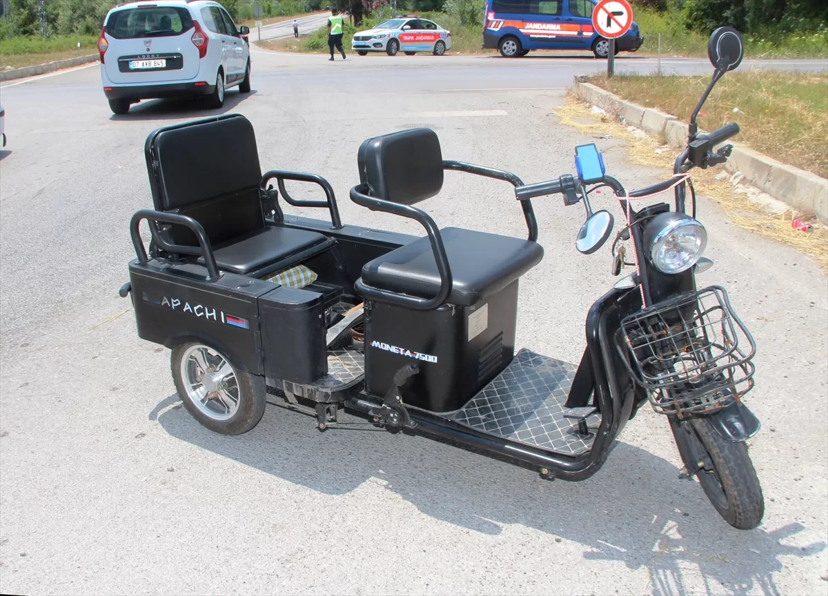 Nail Özgür (44) idaresindeki 34 PE 8199 plakalı otomobil, Dörtyol Köyü Kavşağı'nda önüne çıkan Mehmet Uçar'ın (56) kullandığı elektrikli bisiklete çarpmamak için trafik levhalarına ve refüje çarpıp durabildi.