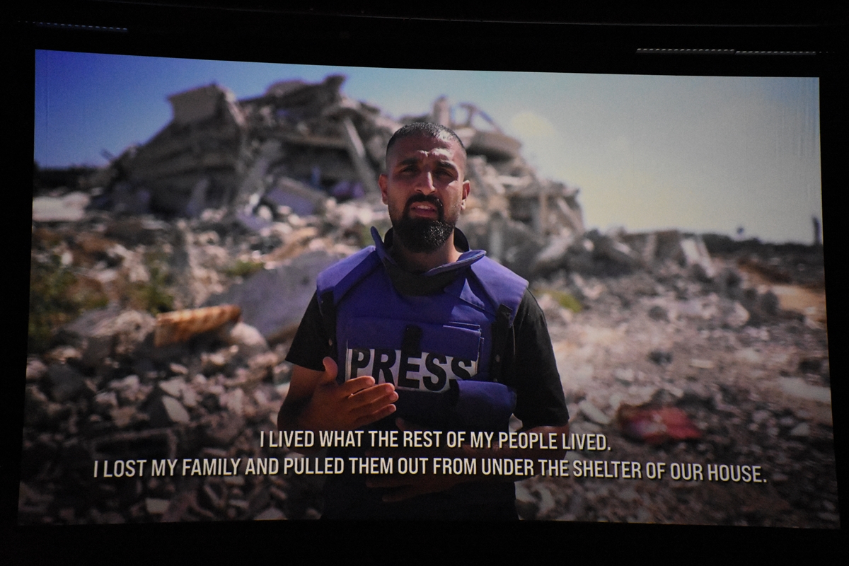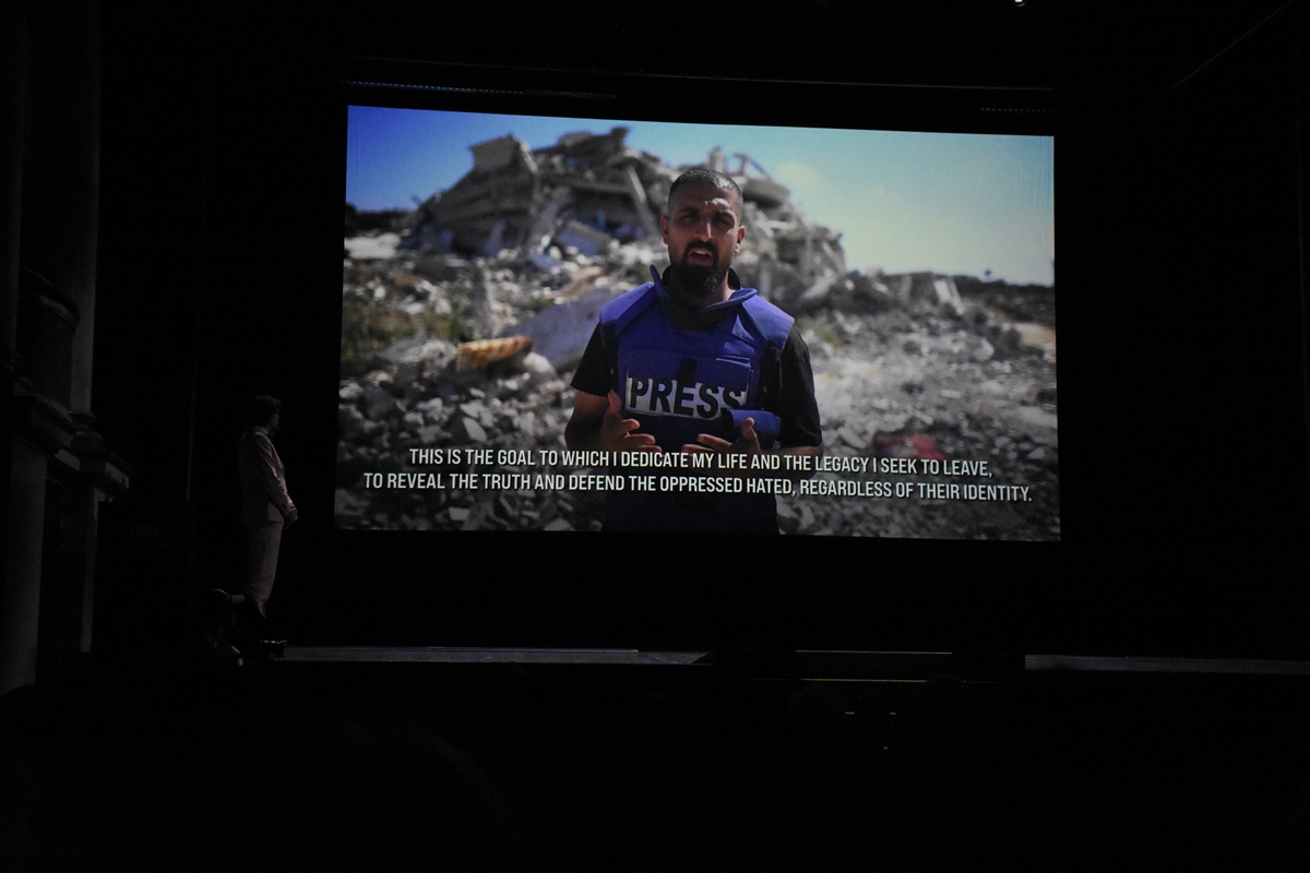 "Halkımın geri kalanının yaşadıklarını ben de yaşadım, ailem ve ben evimizin enkazından kurtarıldık. Her şeyi kameramın vizöründen, ailemin hikayesinden gördüm ve hissettim. Çocuklarım, eşim ve yaralı annem ölümden kaçmak için Gazze'den ayrıldı ve onlarla görüşemiyorum. Onların sesini duymanın tek yolu telefon görüşmesi. Savaşın bitmesini ve çocuklarıma, eşime ve her zaman özlem duyduğum anneme kavuşmayı diliyorum. Biliyorsunuz ki Gazze'deyim ve abluka ve devam eden savaş nedeniyle törene katılamadım."