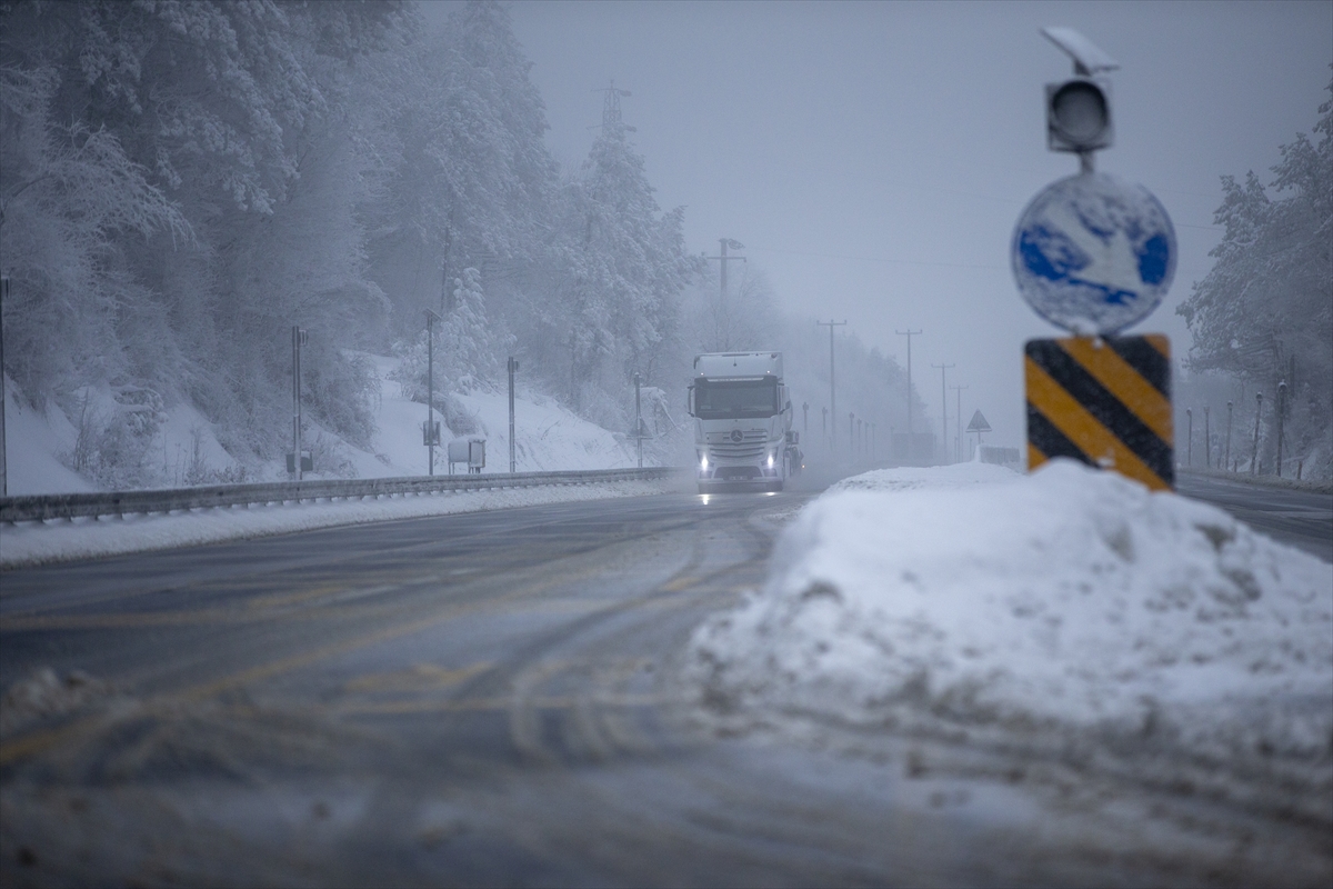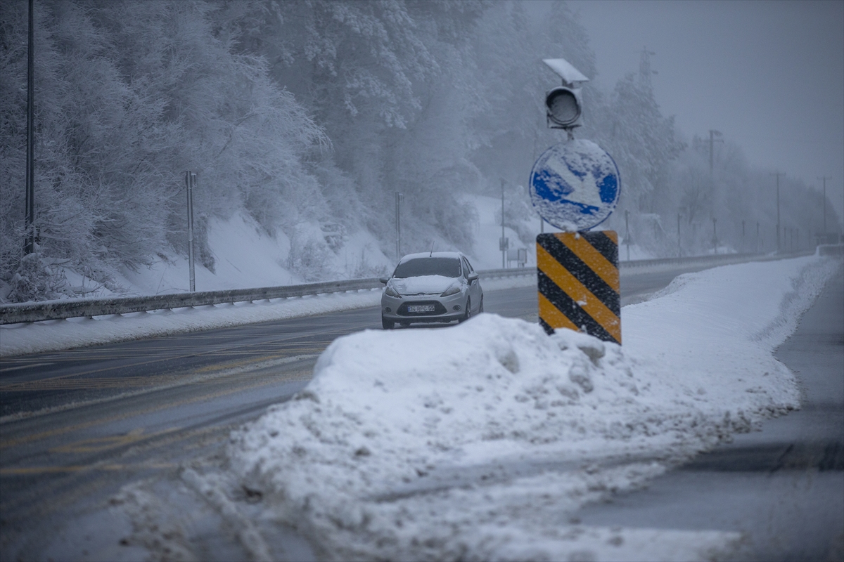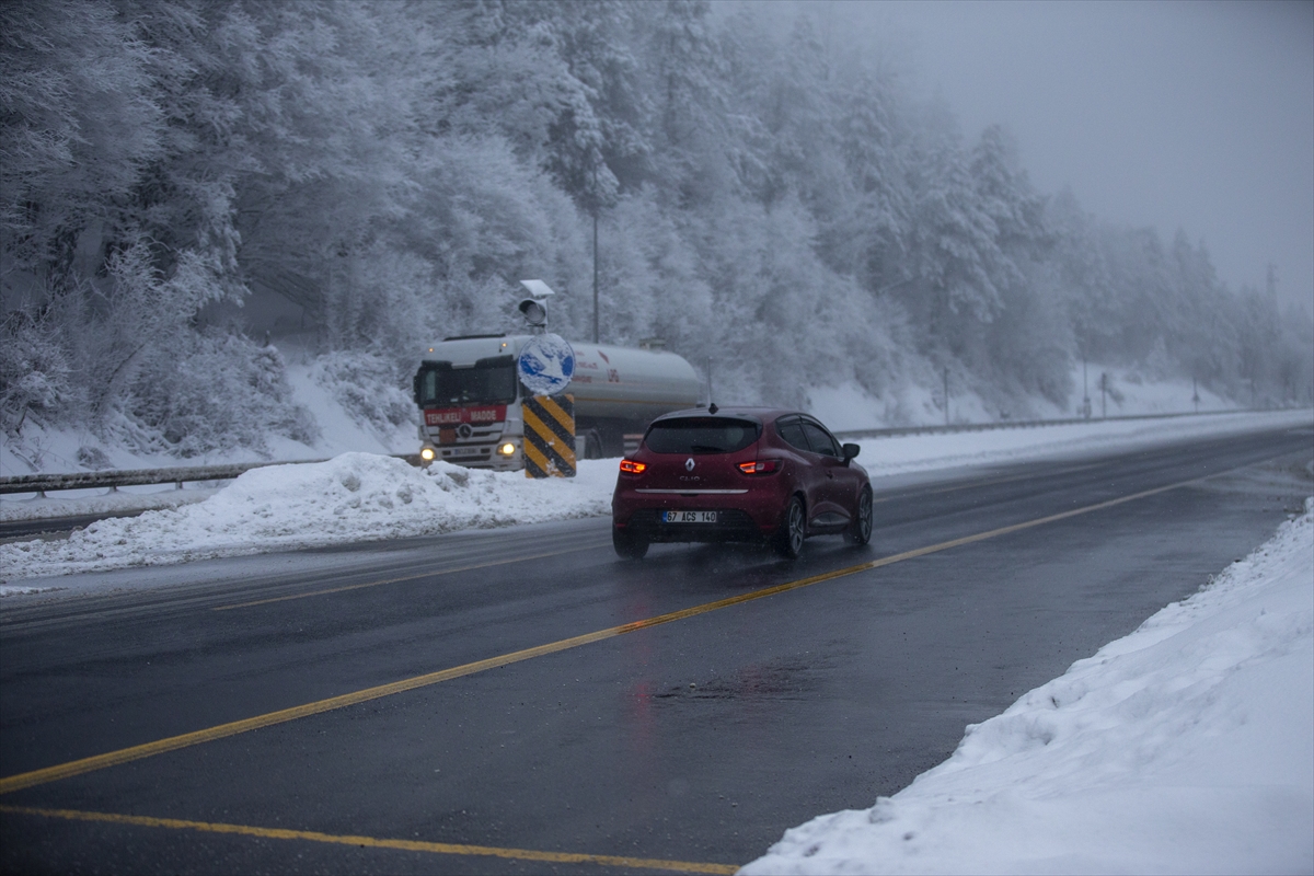 BOLU/DÜZCE (AA) – Anadolu Otoyolu ile D-100 kara yolunun Bolu Dağı geçişinde kar etkisini gösteriyor.