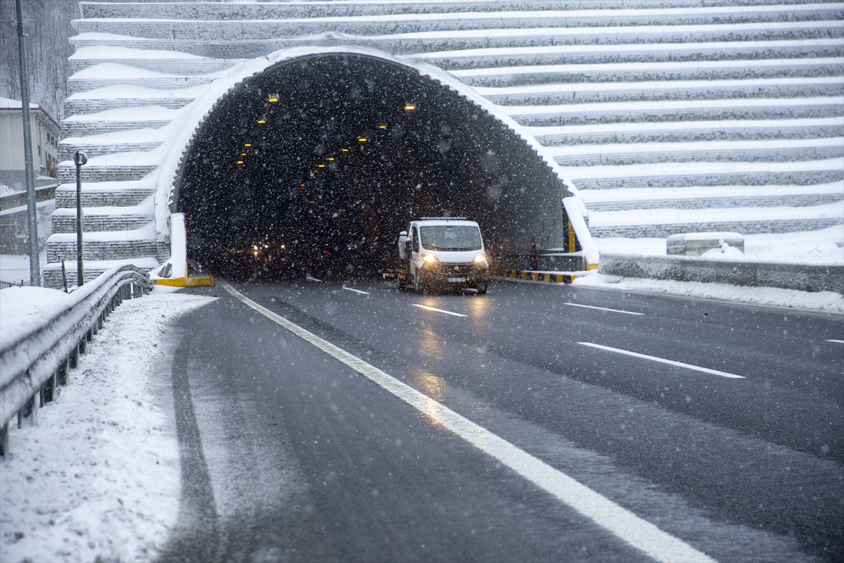 Otoyolunun Yumrukaya, Abant kavşağı, Bolu Dağı Tüneli ve viyadükler kesiminde de kar yağışı görülüyor.