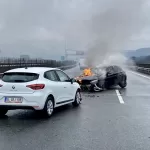 Çarpışmanın etkisiyle dumanlar yükselen İsmail T'ye ait otomobil yanmaya başladı. Araçlarından inen sürücüler, alevleri söndürmeye çalıştı.