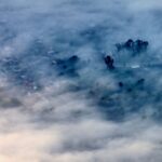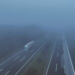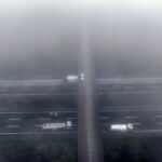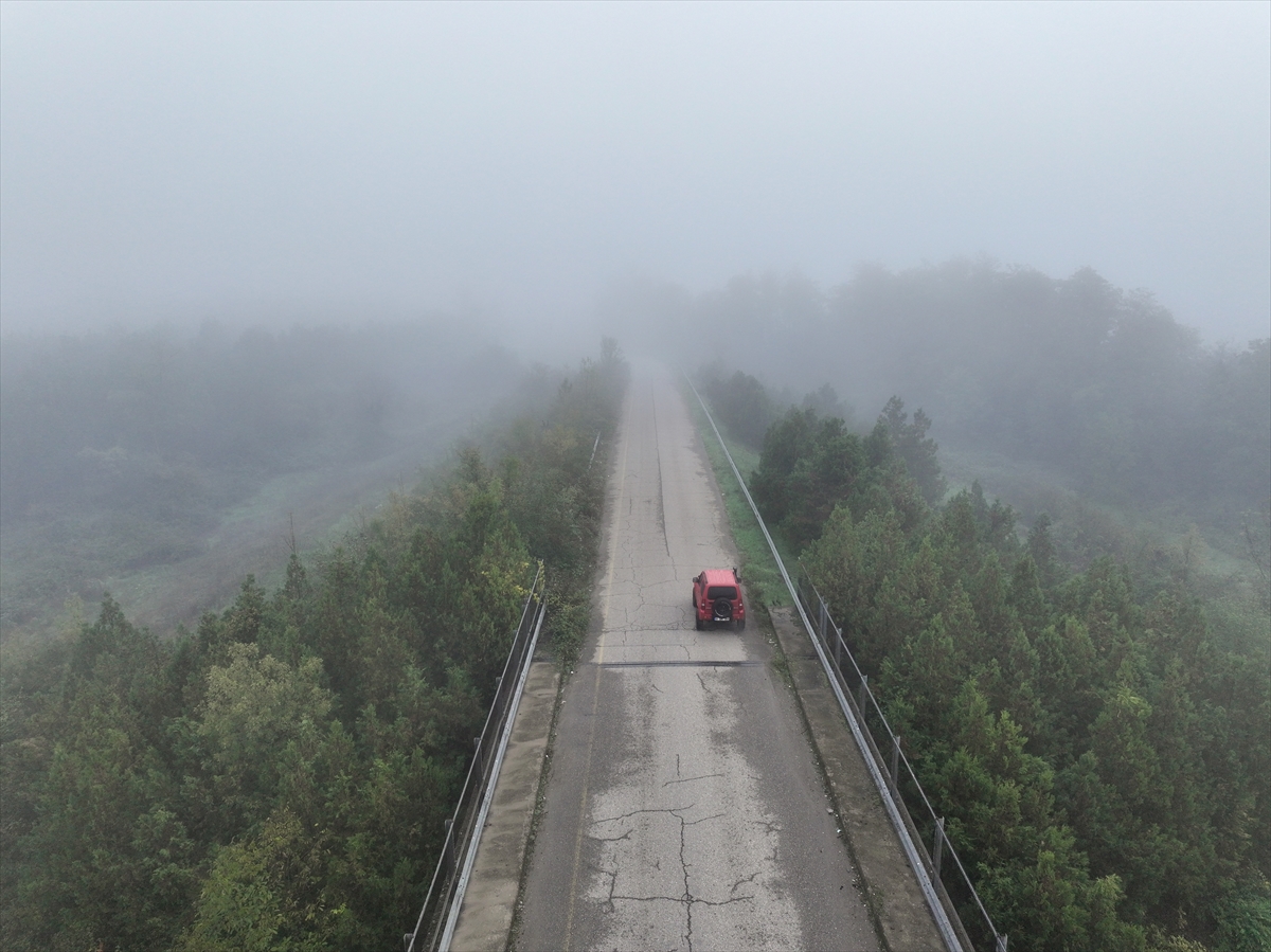 Sis tabakasının kapladığı ova ile sisin etkili olduğu otoyoldaki trafik akışı, havadan görüntülendi.
