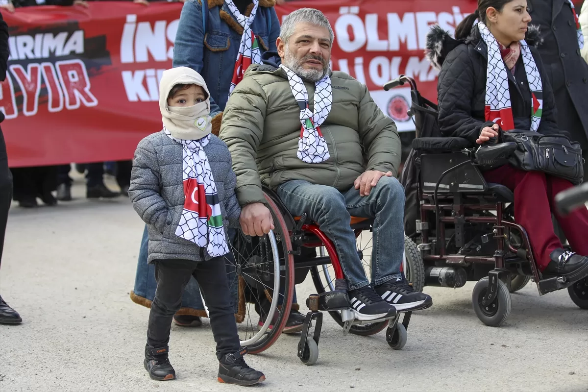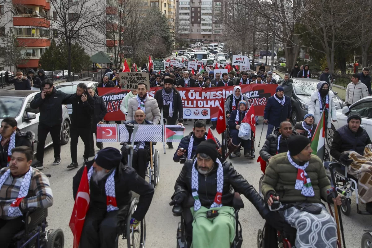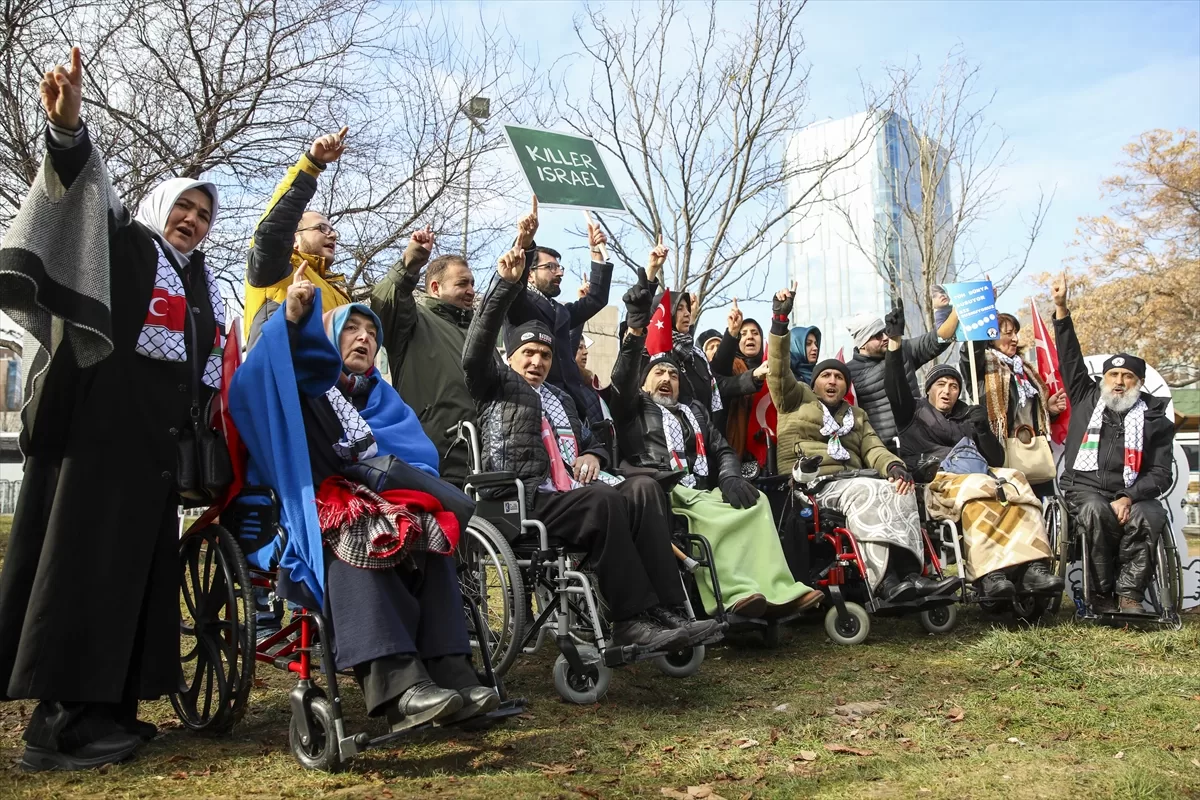 ANKARA (AA) – Bazı sivil toplum kuruluşlarının engelli üyeleri, Ankara'da ABD Büyükelçiliği önünde şehit askerleri anmak ve Filistin'e destek için etkinlik düzenledi.