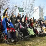 Gruptakiler, İstiklal Marşı'nı okudu, ardından protez, ortez, tekerlekli sandalye ve beyaz bastonlarını Büyükelçiliğin önüne bıraktı.