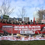 İnsanlık Ölmesin Platformu ile Ankara Filistin Dayanışma Platformu adına konuşan, Memur-Sen Engelliler Komisyonu Başkanı Ahmet Dönmez, "Her uzvumuzu kaybetsek de vicdanımızla buradayız." ifadesini kullandı.