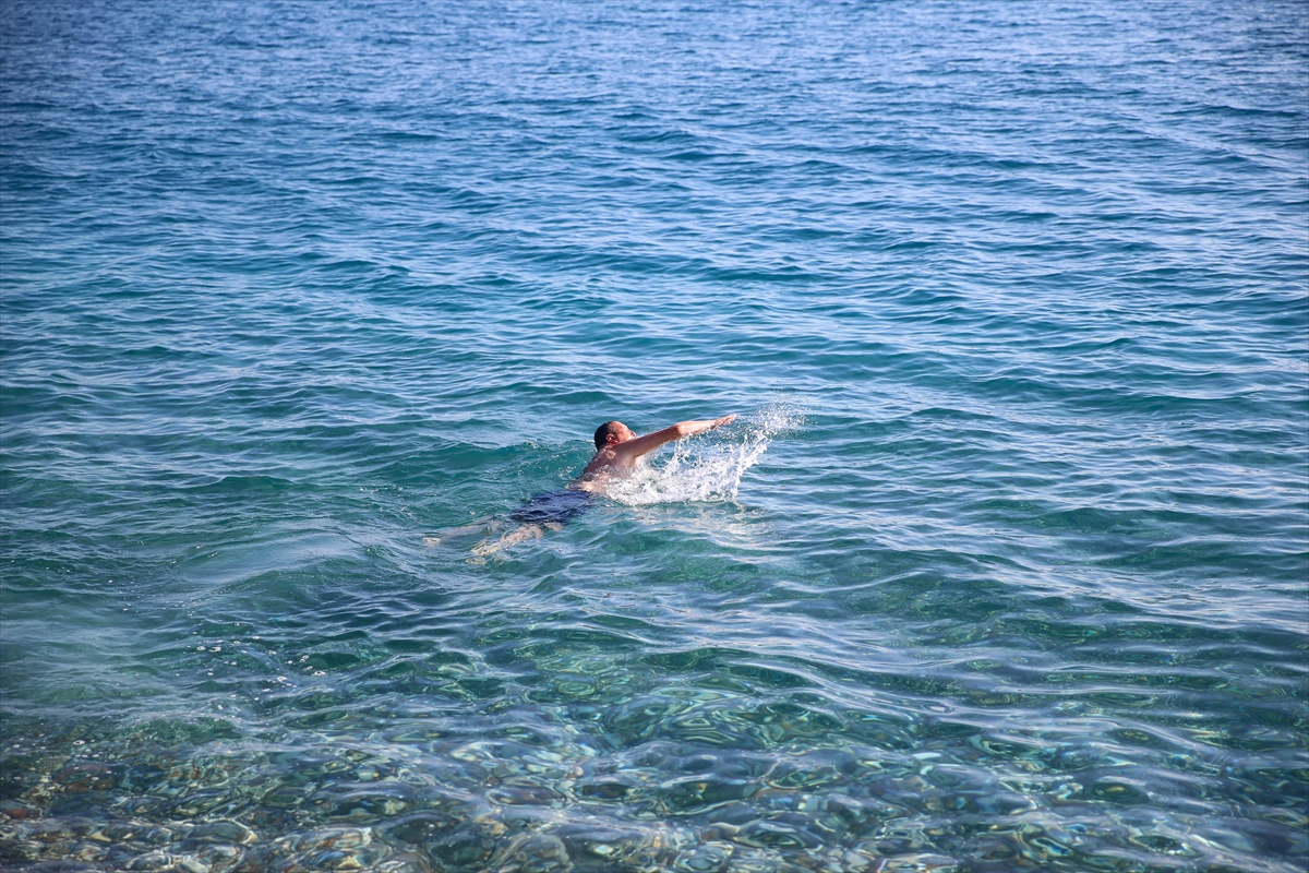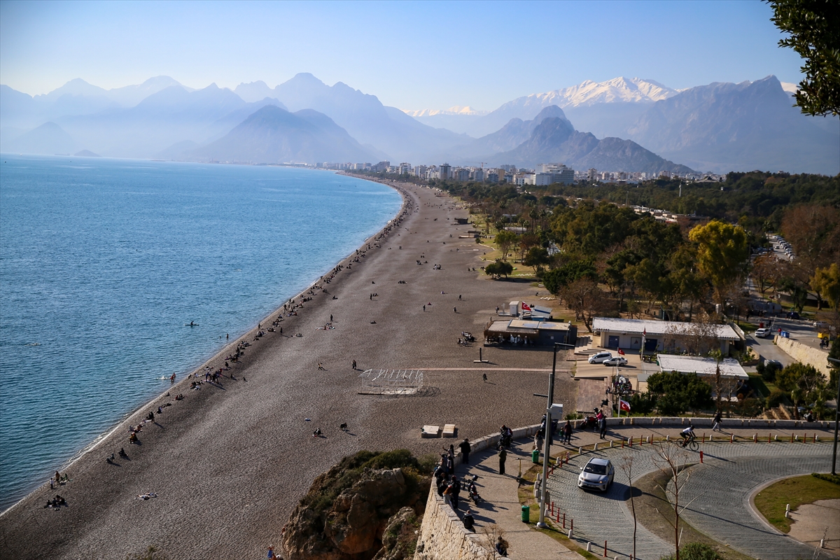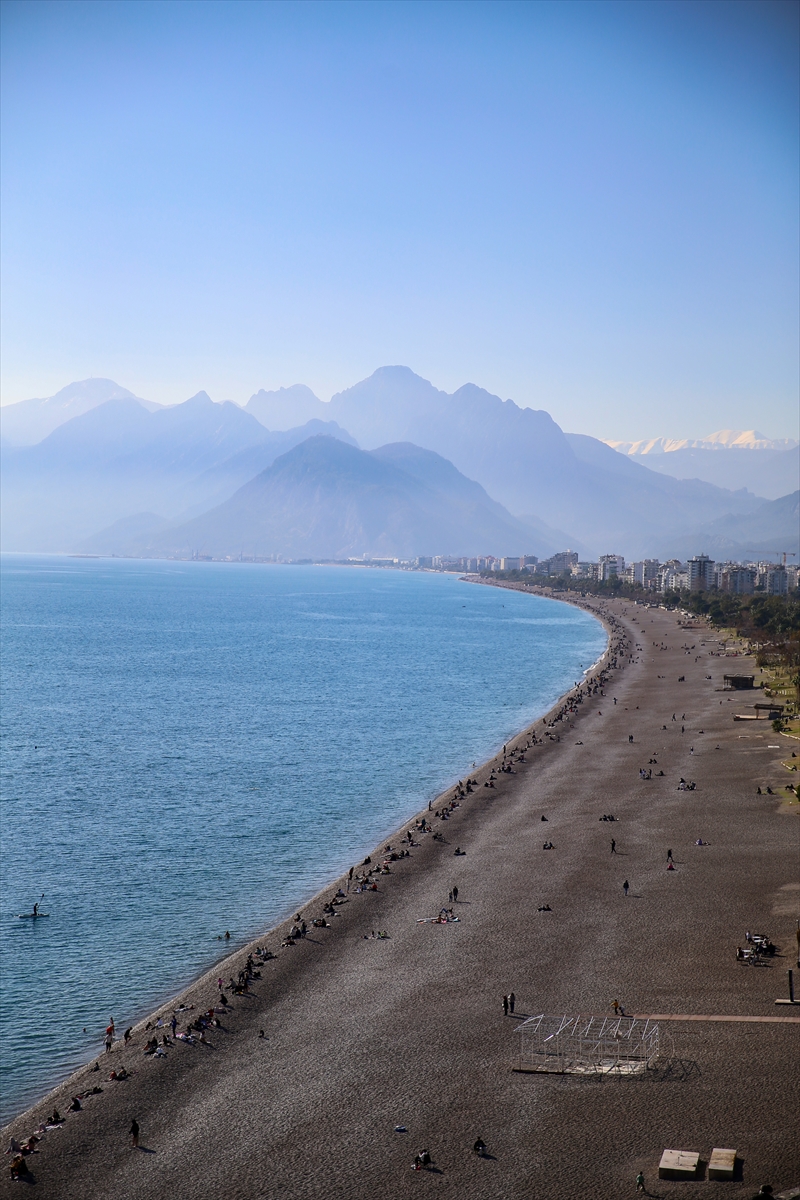 Hava sıcaklığının 18, deniz suyu sıcaklığının 19 derece ölçüldüğü kentte, yılbaşı tatili ve güneşli havayı fırsat bilen vatandaşlar ve turistler Konyaaltı, Lara, Sarısu plajlarına akın etti.