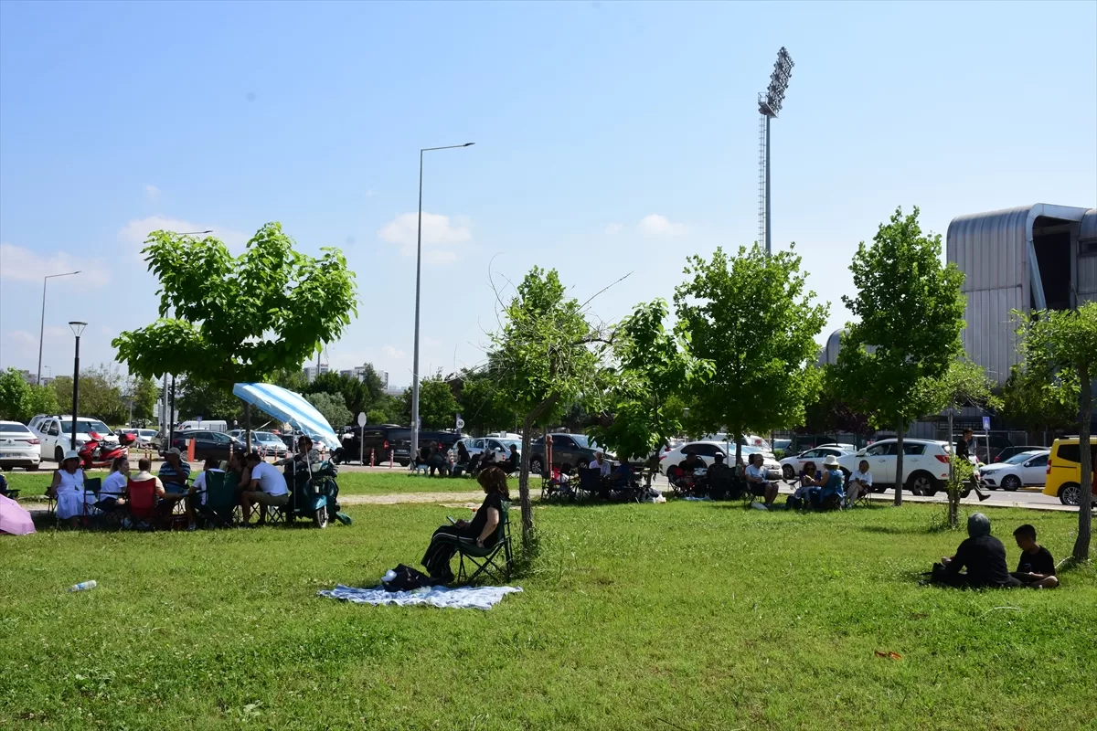 Sınavın başlamasıyla veliler, bank ve çardaklar ile gölge alanlara kurdukları masa ve sandalyelerde heyecanla bekledi.