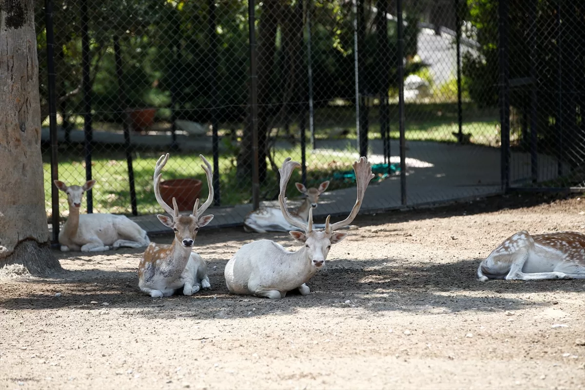 Yaşam parkındaki alageyik ve ördekler de yaşam alanlarındaki gölgelik alanlarda duruyor.