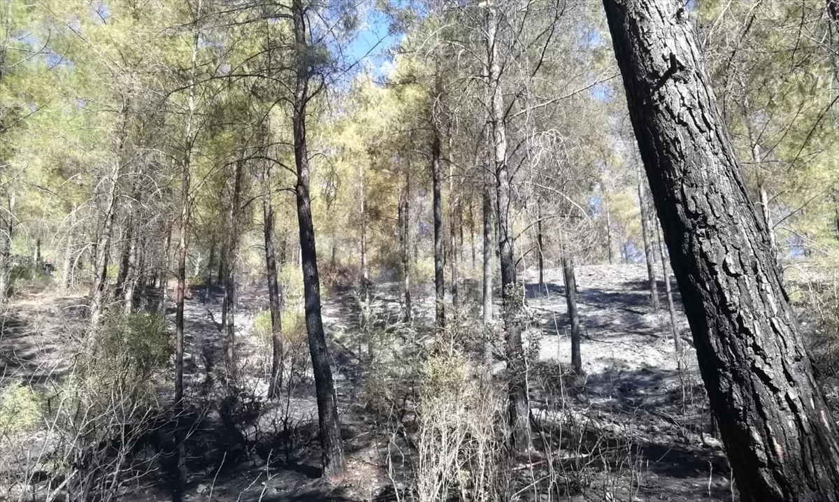 Soğutma çalışmalarının sürdüğü bölgede, bir hektar ormanlık alan zarar gördü.