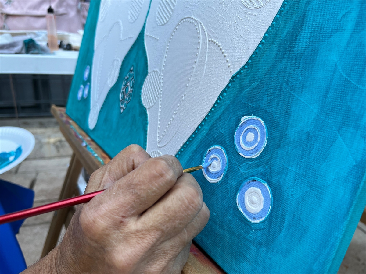 Kaleiçi sokaklarında düzenlenen çalıştayda, 58 GÜSAD üyesi, seramik heykel, ebru, suluboya, akrilik ve yağlı boya çalışması yaptı.