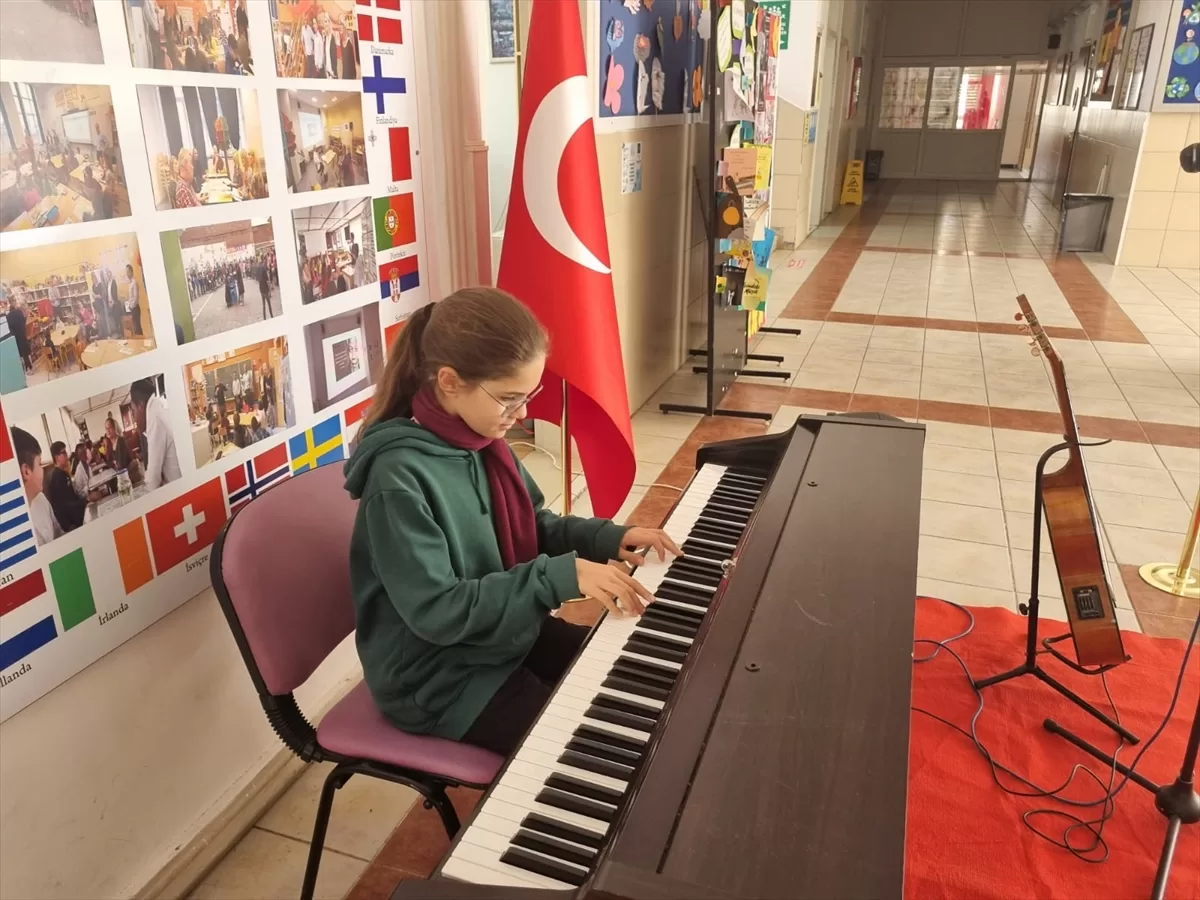 Konyaaltı ilçesindeki Dr. Cahit Ünver Ortaokulunda öğrenciler, okul girişinde kendileri için oluşturulan sahneye çıkmanın heyecanını yaşıyor. Boş zamanlarında mikrofon başına geçen öğrenciler, piyano, gitar gibi çeşitli müzik aletlerini çalarken, bazıları da türküler ve şarkılar seslendiriyor.