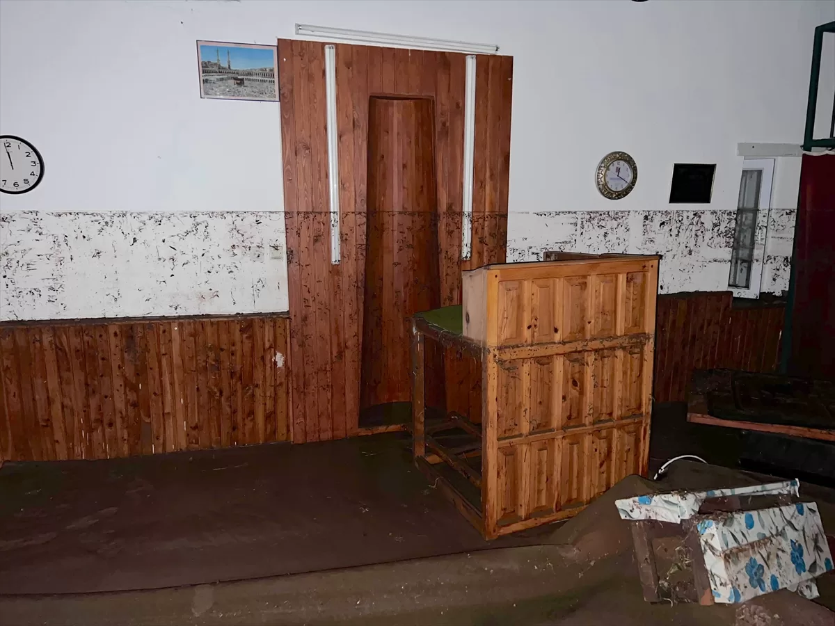Ahatlı Mahallesi'ndeki Ahatlı Camisi'ni de su bastı. Kullanılmaz hale gelen camide hasar oluştu.