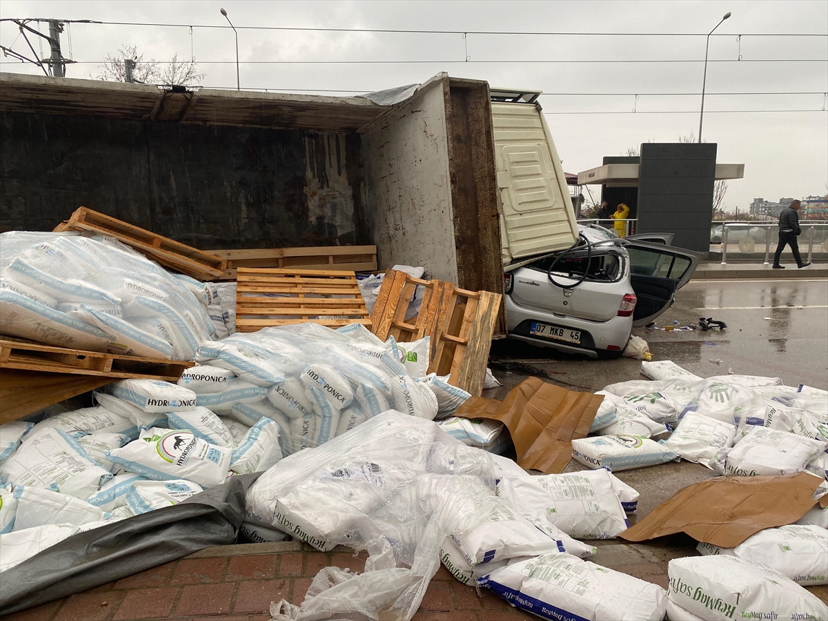 Şahin K'nin kullandığı 15 EH 517 plakalı gübre yüklü kamyon, Süleyman Demirel Bulvarı'ndaki kavşakta, durakta bekleyen 07 AU 0336 plakalı halk otobüsüne çarptıktan sonra önünde ilerleyen Gülşen Saygılı (43) idaresindeki 07 MKB 45 plakalı otomobilin üzerine devrildi.