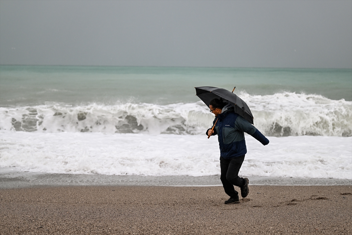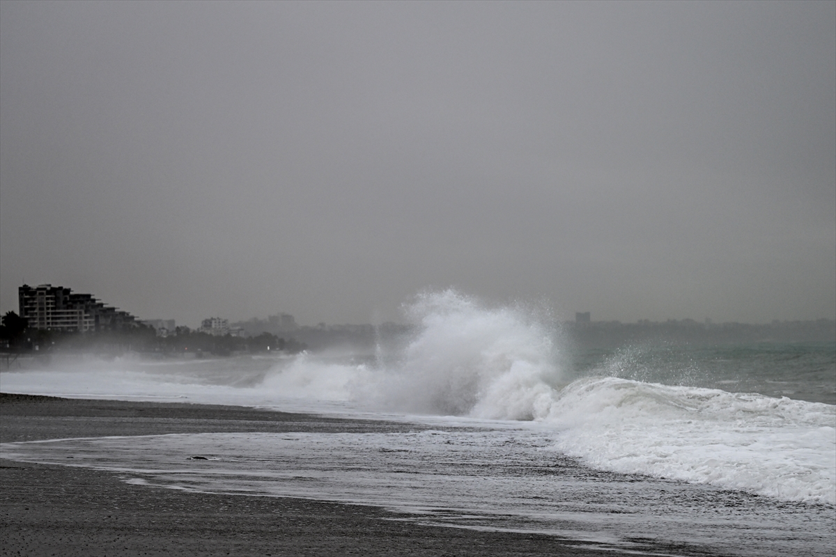 Rüzgar nedeniyle Konyaaltı Sahili'nde dev dalgalar oluştu.