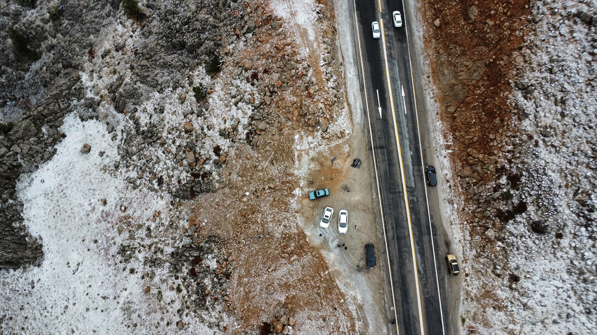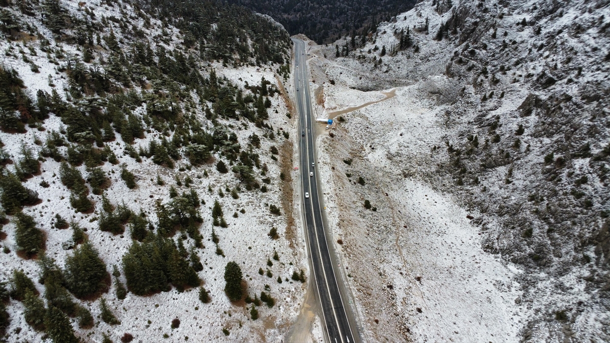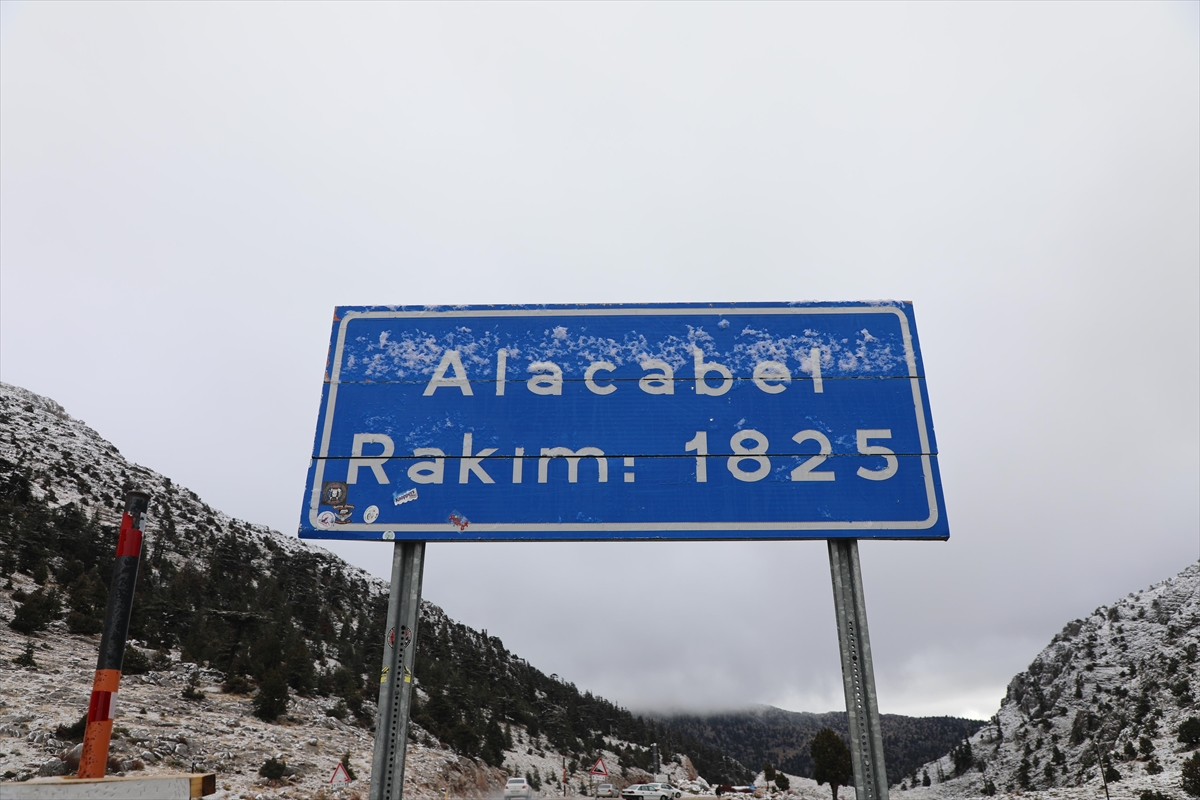 ANTALYA (AA) – Antalya'yı Konya'ya bağlayan 1825 metre rakımlı Alacabel mevkisine mevsimin ilk karı yağdı.