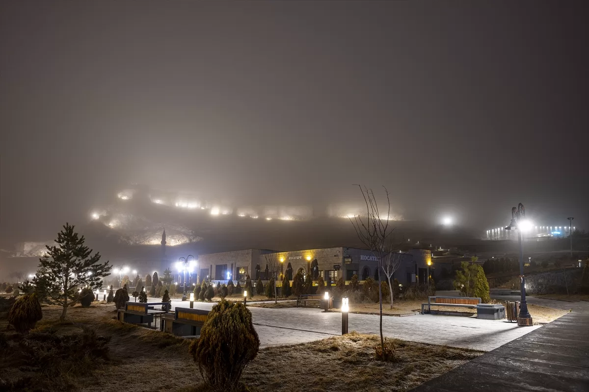 Kent merkezinde oluşan yoğun sis nedeniyle görüş mesafesi bazı bölgelerde yaklaşık 10 metreye kadar düştü.