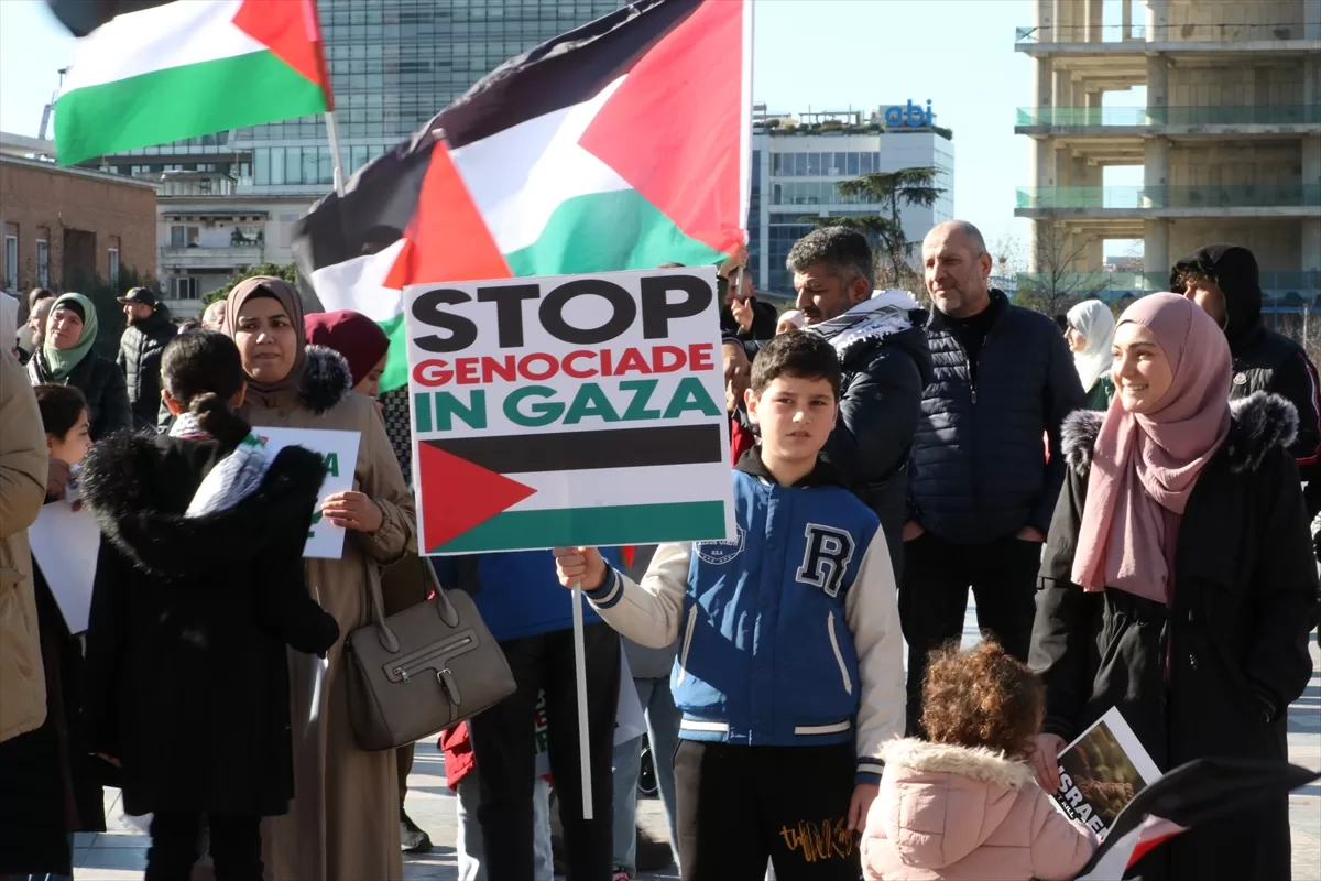 TİRAN (AA) – Arnavutluk'un başkenti Tiran'da, Filistin halkına destek ve dayanışma gösterisi yapıldı.