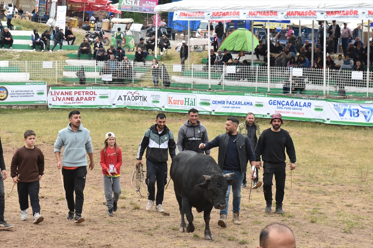 Artvin Belediyesinin organizasyonunda boğa güreşleri kültürünü yaşatmak ve gelecek nesillere aktarmak amacıyla düzenlenen festival kapsamında 1200 rakımlı Kafkasör Yaylası'ndaki arenada boğalar güreşti.